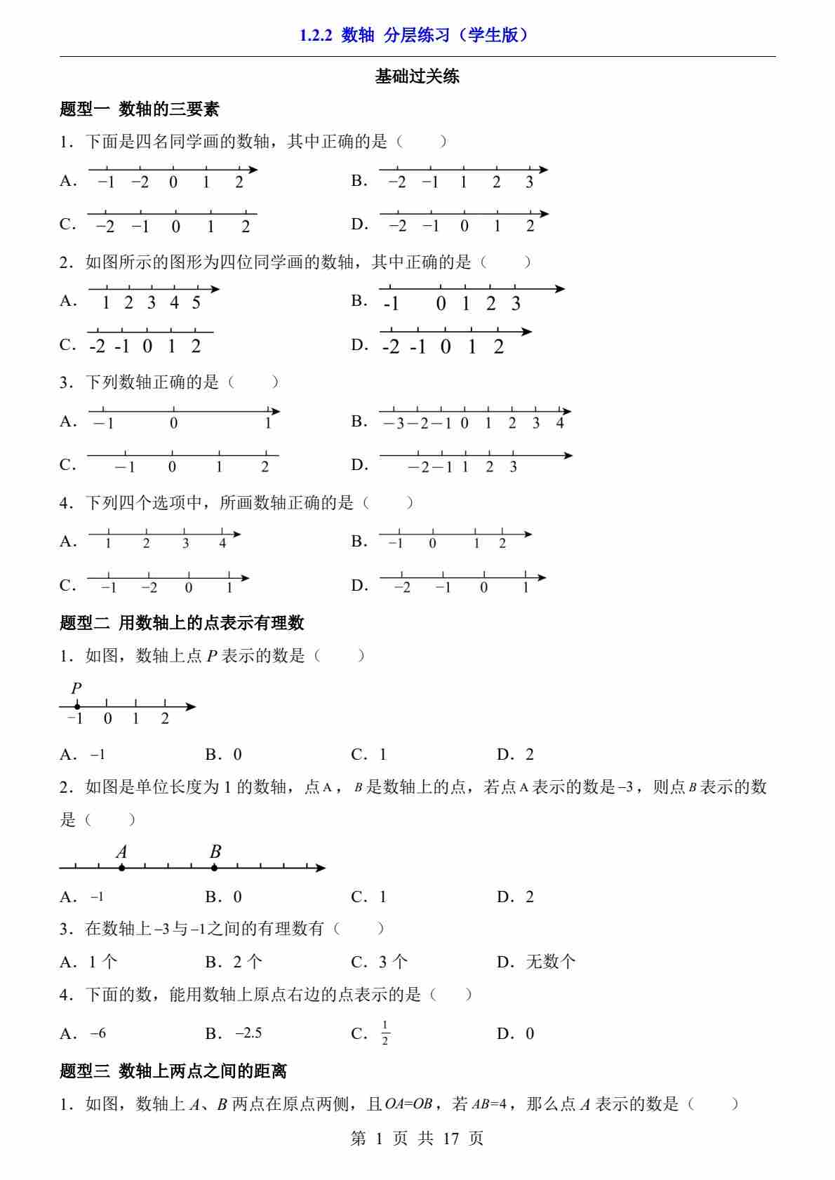 1.2.2 数轴(分层练习)