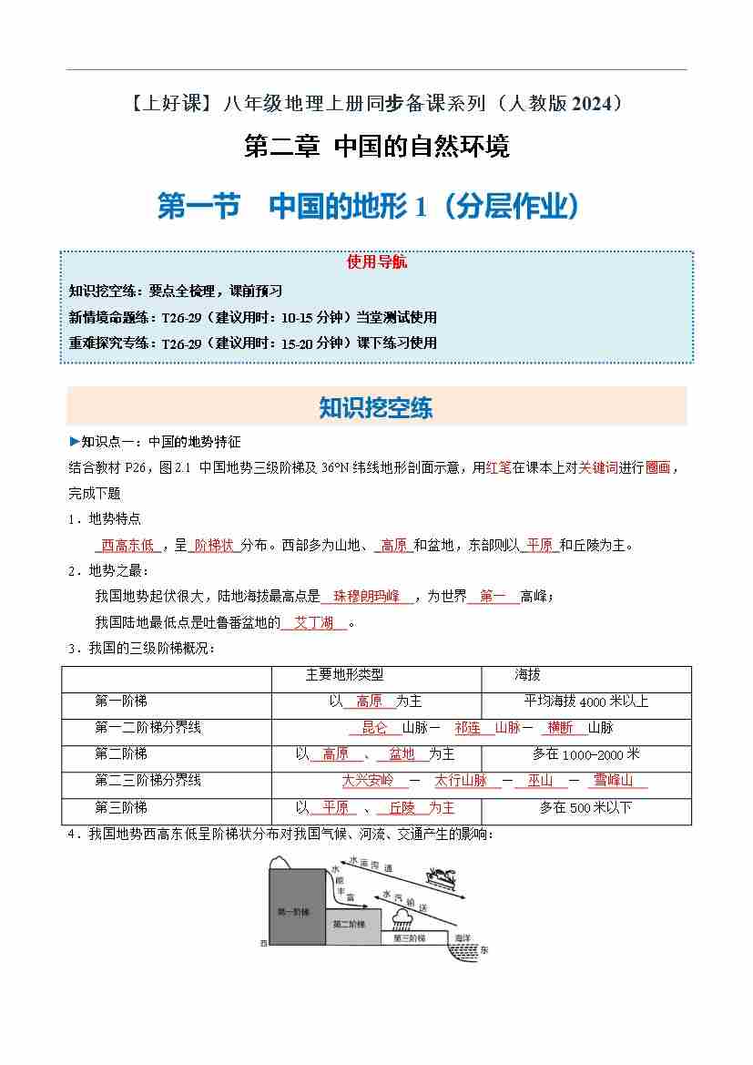 中国的地形第2课时(分层作业)(原卷版)2025.
