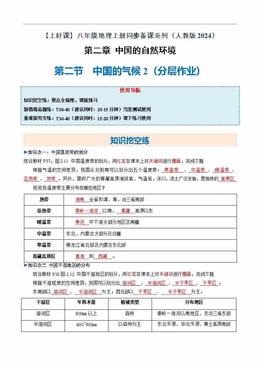 中国的气候第2课时(分层作业)(解析版)55