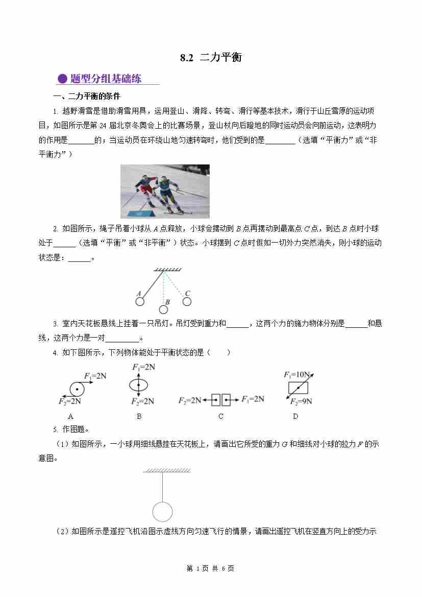 8.2 二力平衡(分层作业)【原卷版】