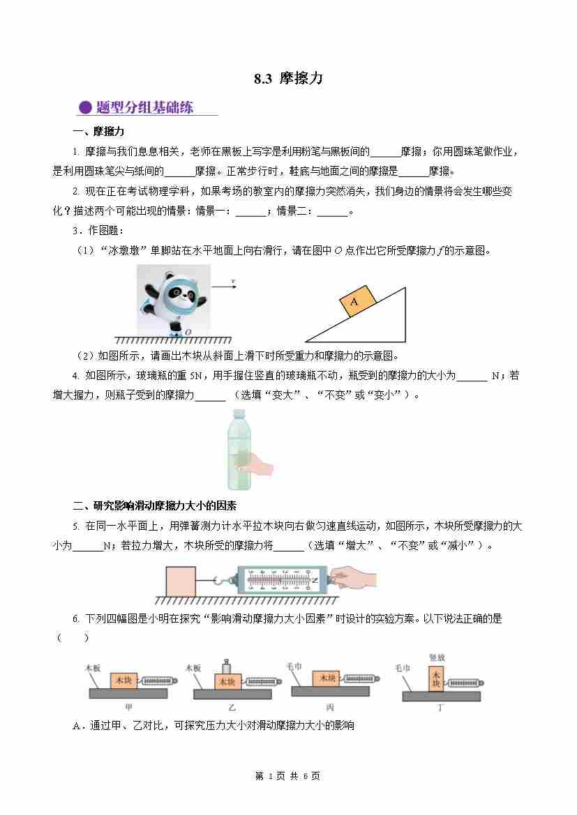 8.3 摩擦力(分层作业)【原卷版】