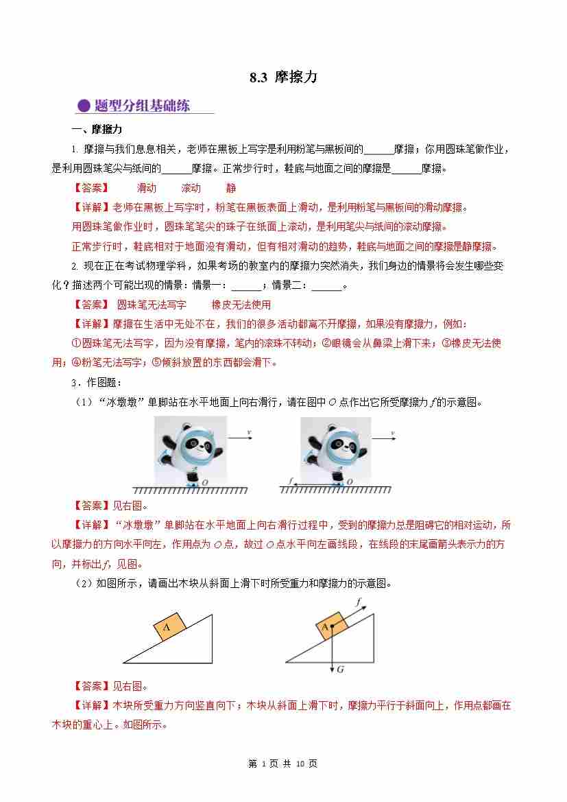 8.3 摩擦力(分层作业)【解析版】