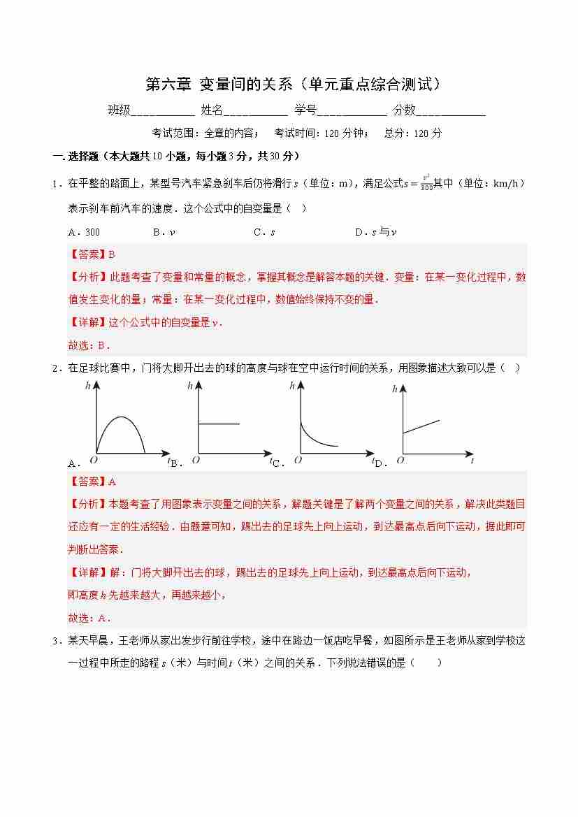 第六章 变量间的关系(单元重点综合测试)(解析版)