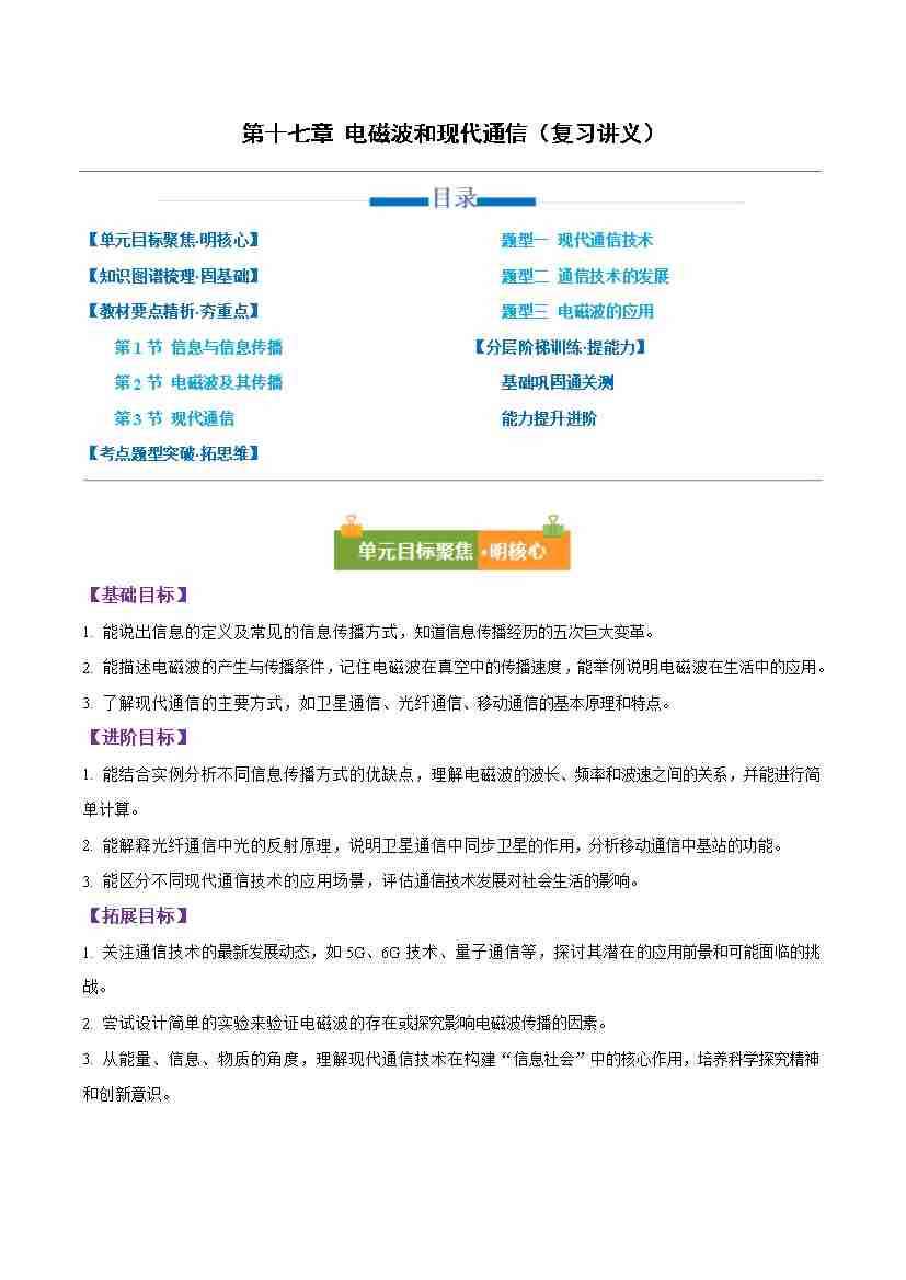 第十七章 电磁波和现代通信(复习讲义)(原卷版)