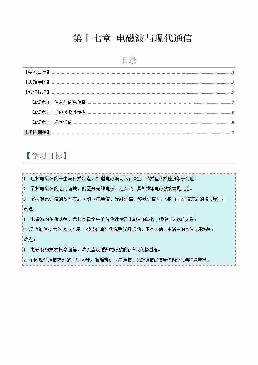 第十七章 电磁波与现代通信(举一反三讲义)(原卷版)