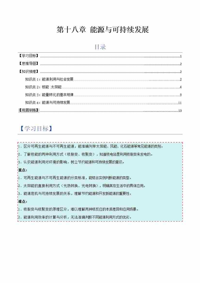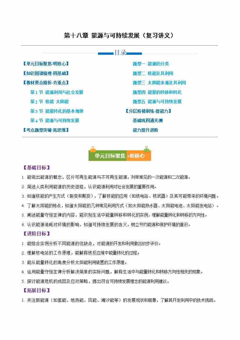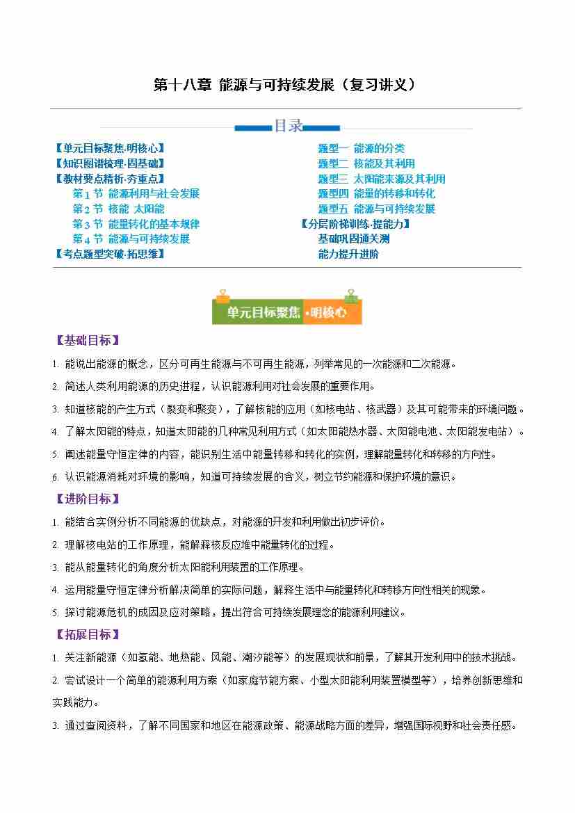 第十八章 能源与可持续发展(举一反三讲义)(原卷版)