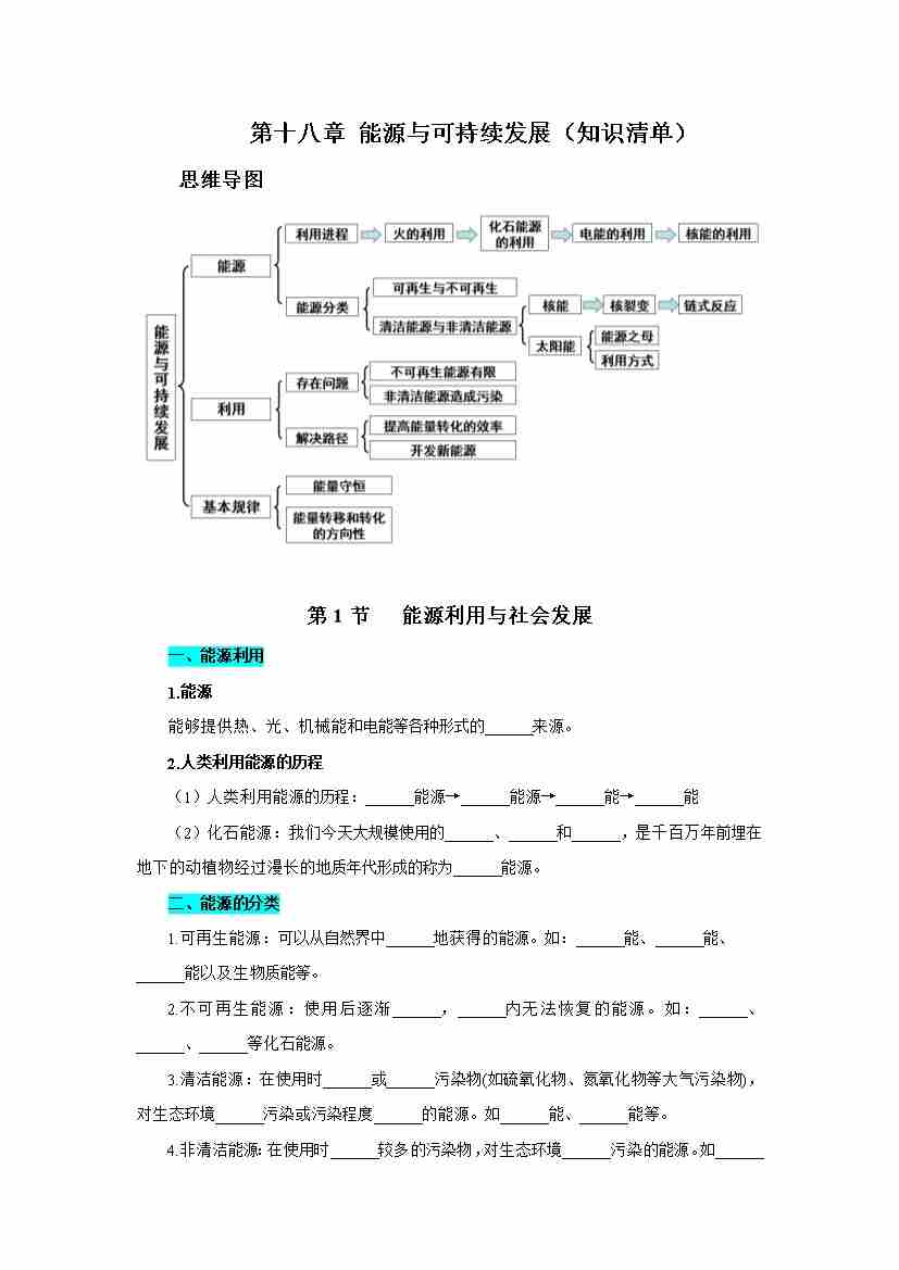 第十八章 能源与可持续发展(知识清单)(挖空版)