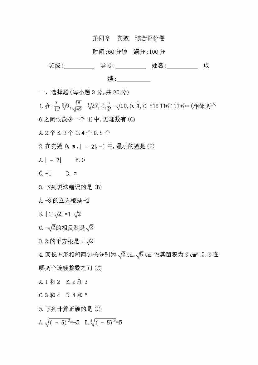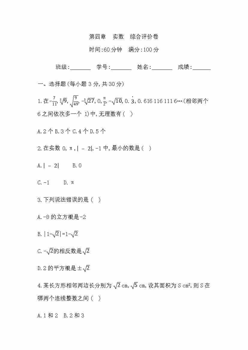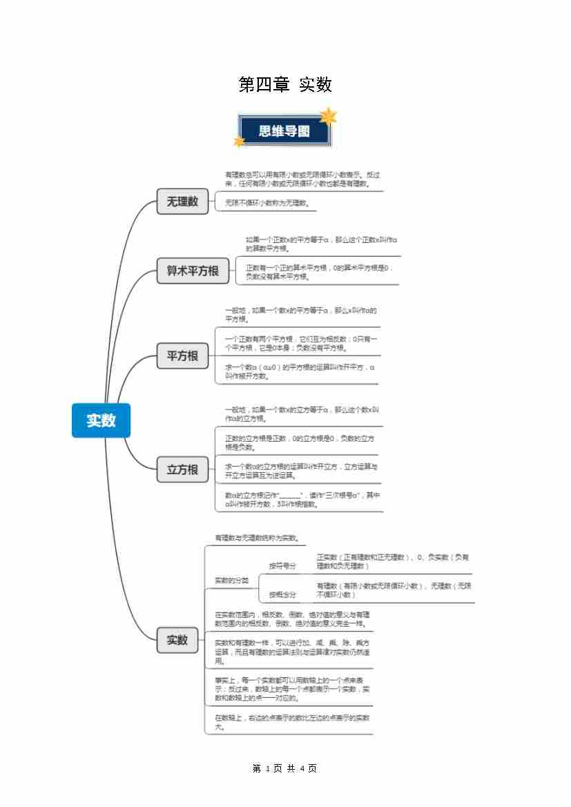 第4章 实数(知识清单)(挖空版)数学鲁教版(五四制)