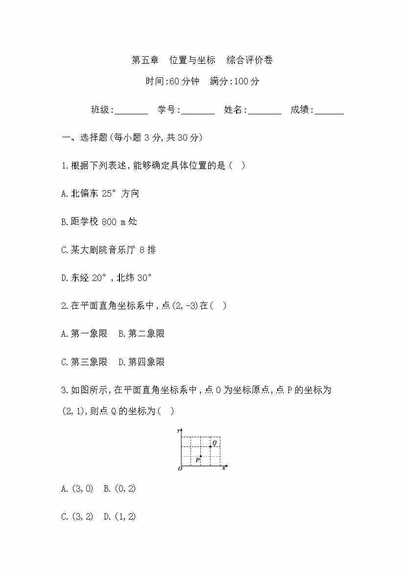 第5章 位置与坐标(知识清单)(挖空版)数学鲁教版(五四制)