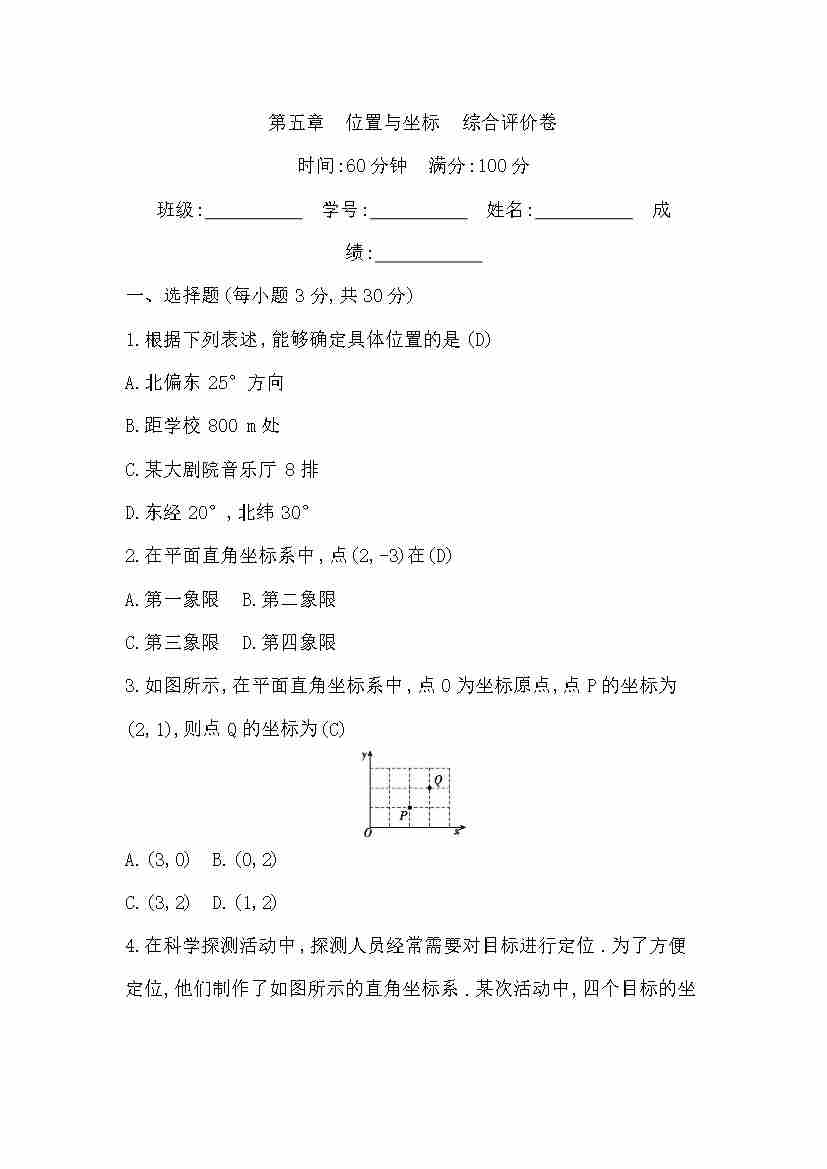 第5章 位置与坐标(知识清单)(答案版)数学鲁教版(五四制)