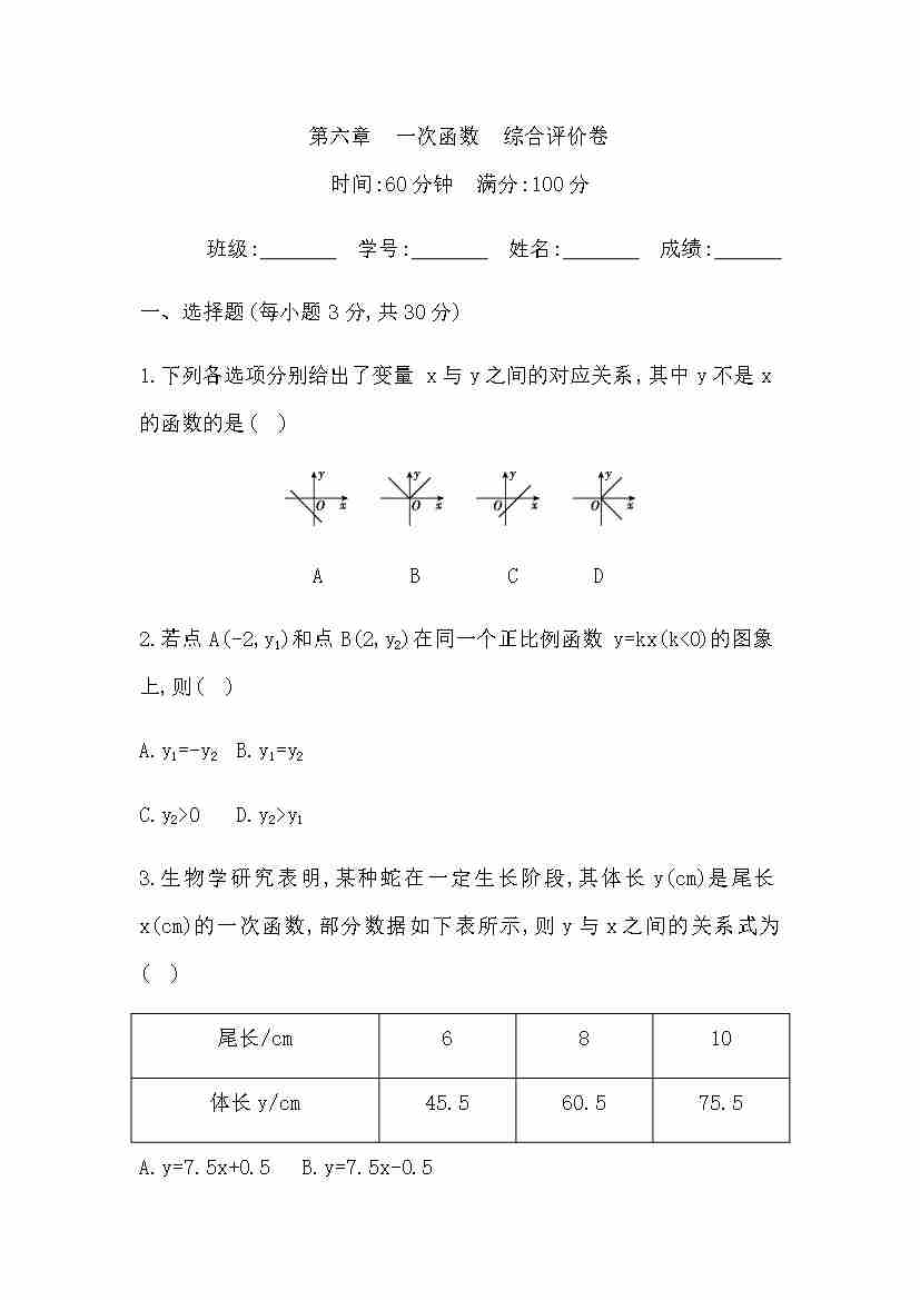 第6章 一次函数(知识清单)(挖空版)数学鲁教版(五四制)