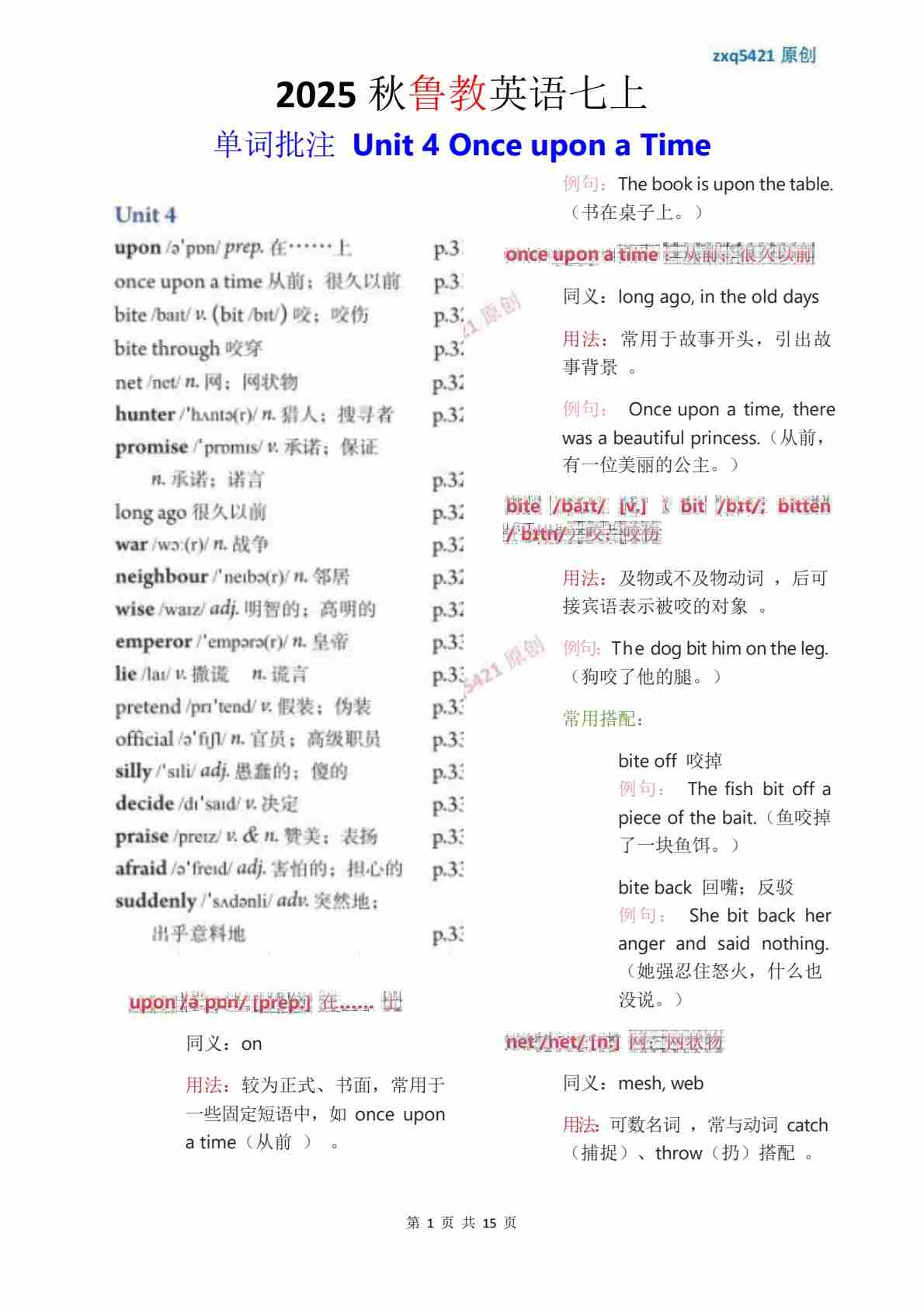2025 秋鲁教版英语七上 单词批注 Unit 4