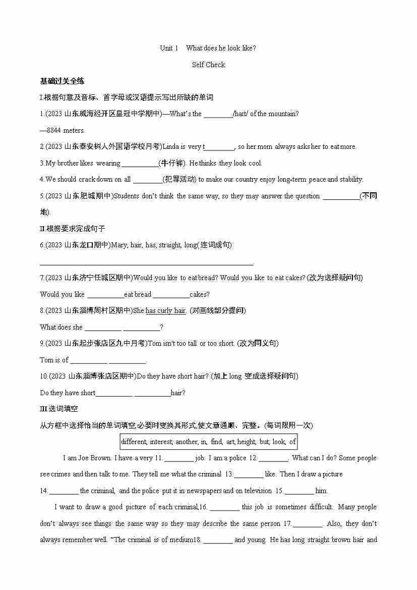Unit 1 Self Check 同步练习