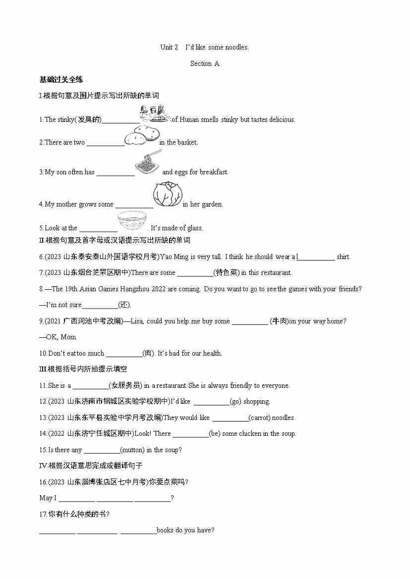 Unit 2 Section A 同步练习