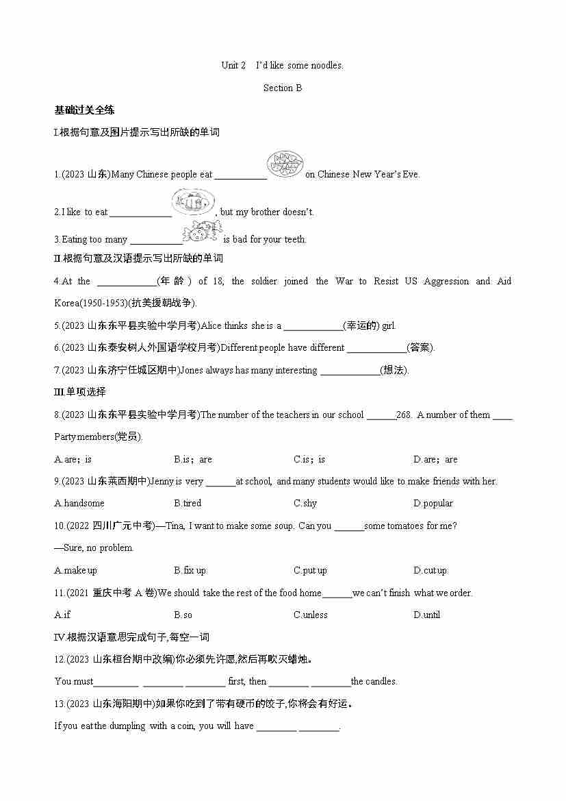 Unit 2 Section B 同步练习