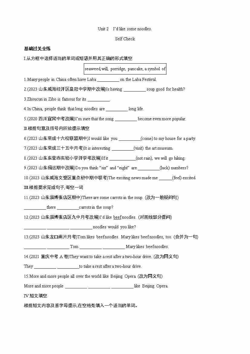 Unit 2 Self Check 同步练习