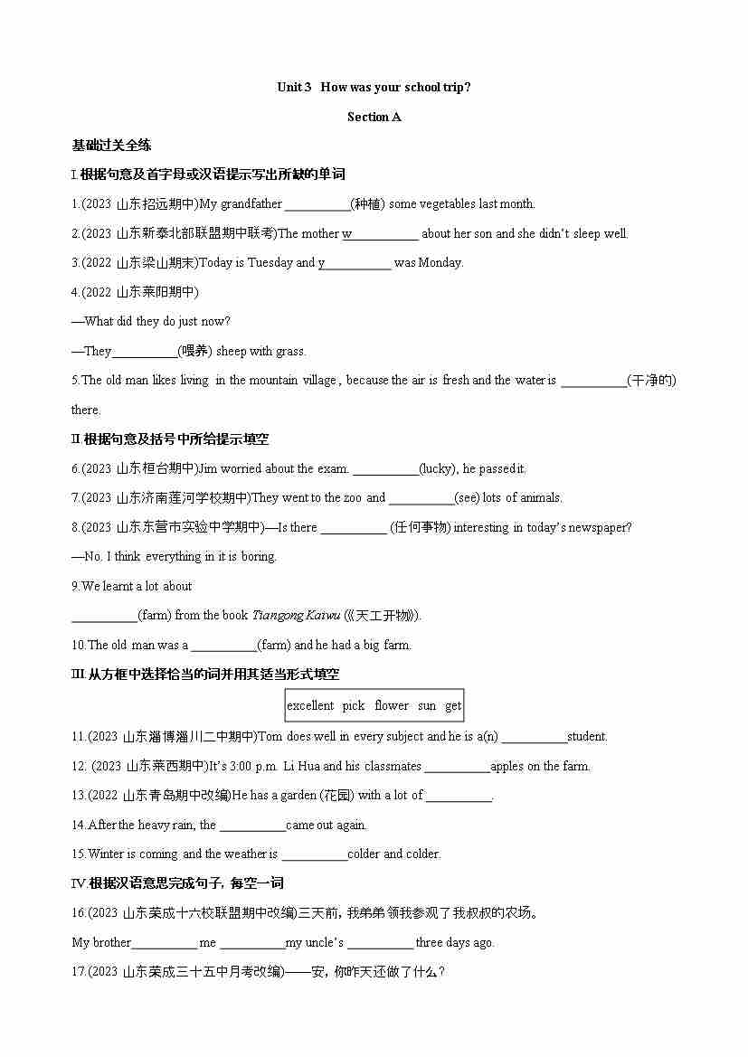Unit 3 Section A 同步练习