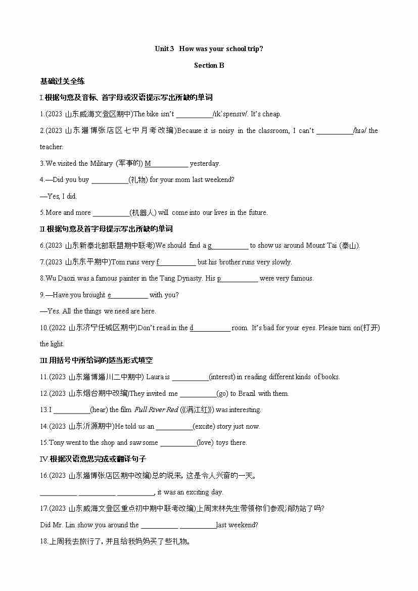 Unit 3 Section B 同步练习