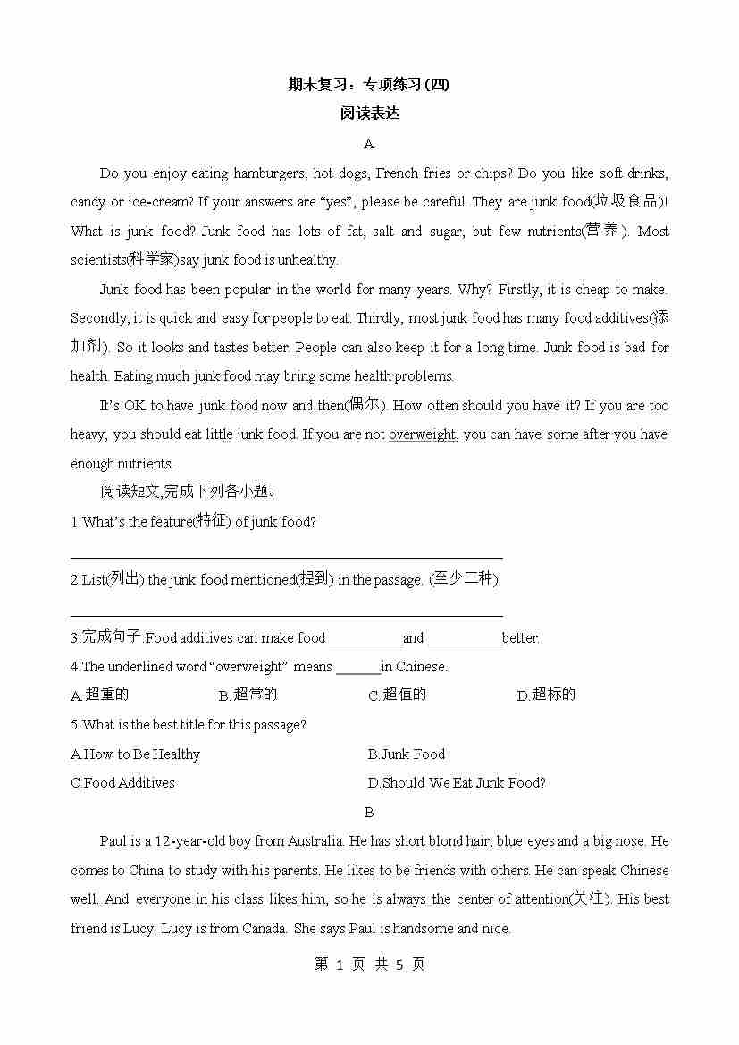 专项04 阅读表达