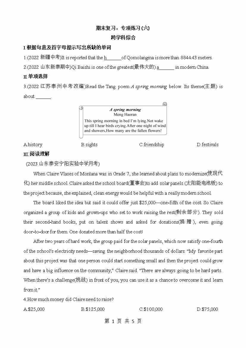 专项06 跨学科综合