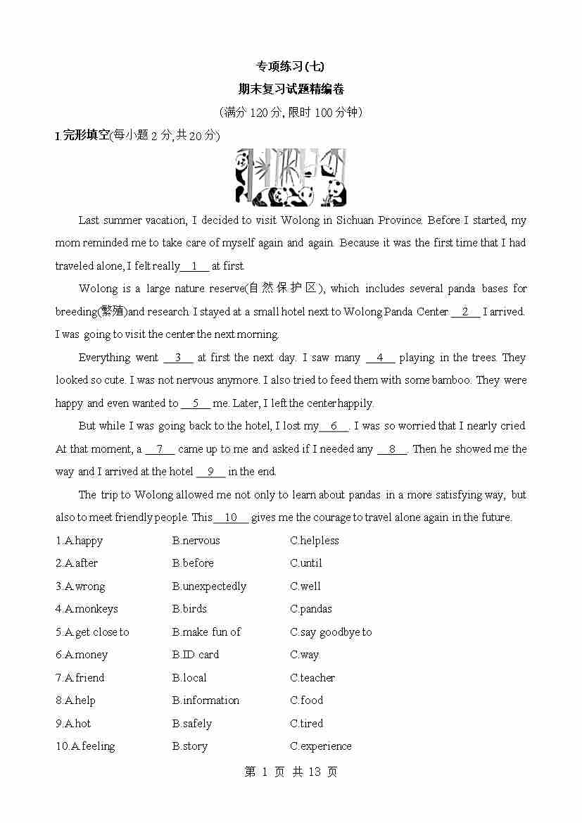 专项07 期末复习试题精编卷