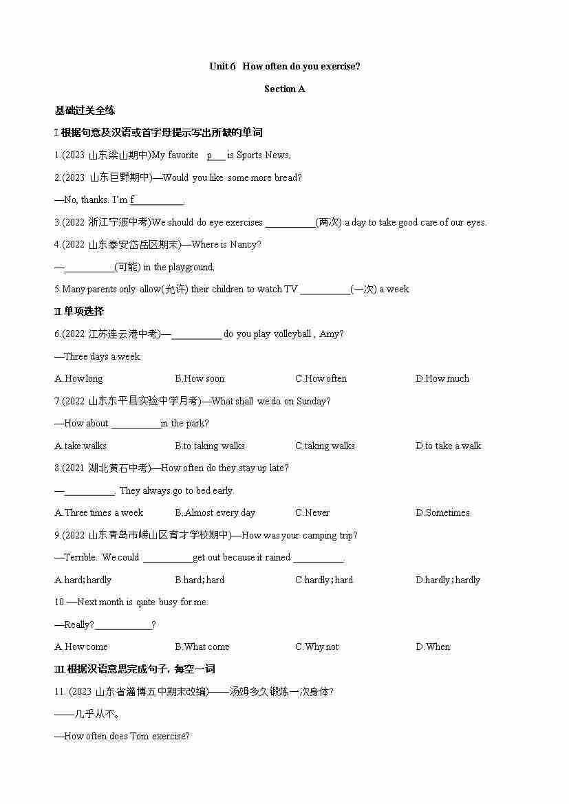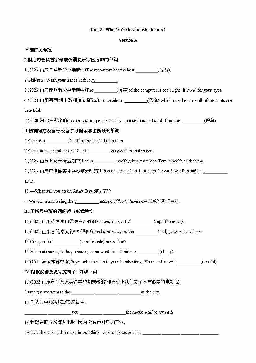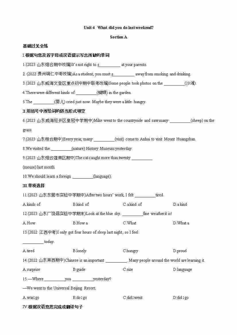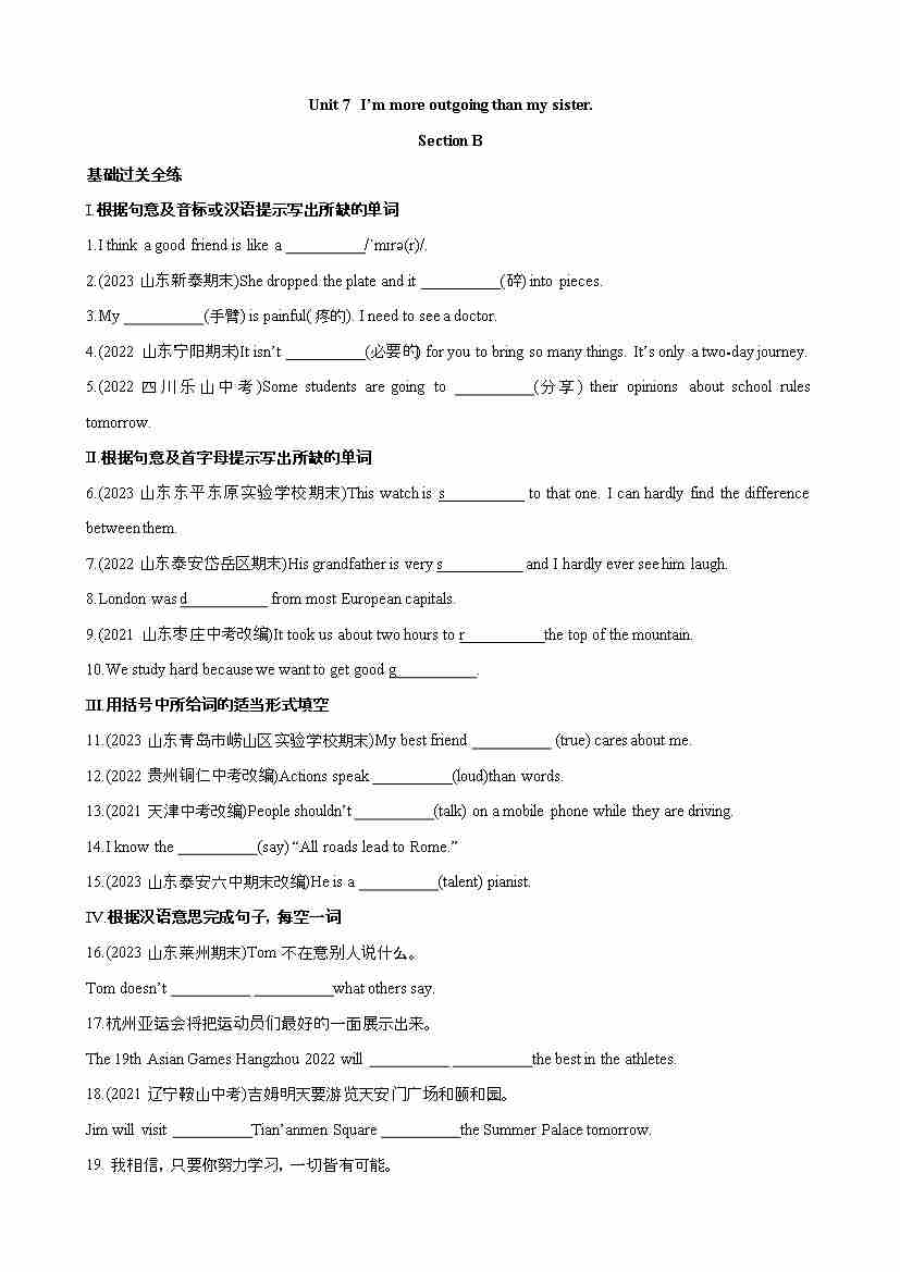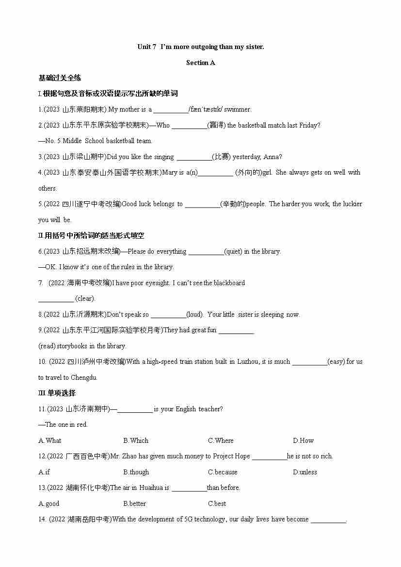 七年级英语上册Unit 1单元测试·基础卷(考试版A4)
