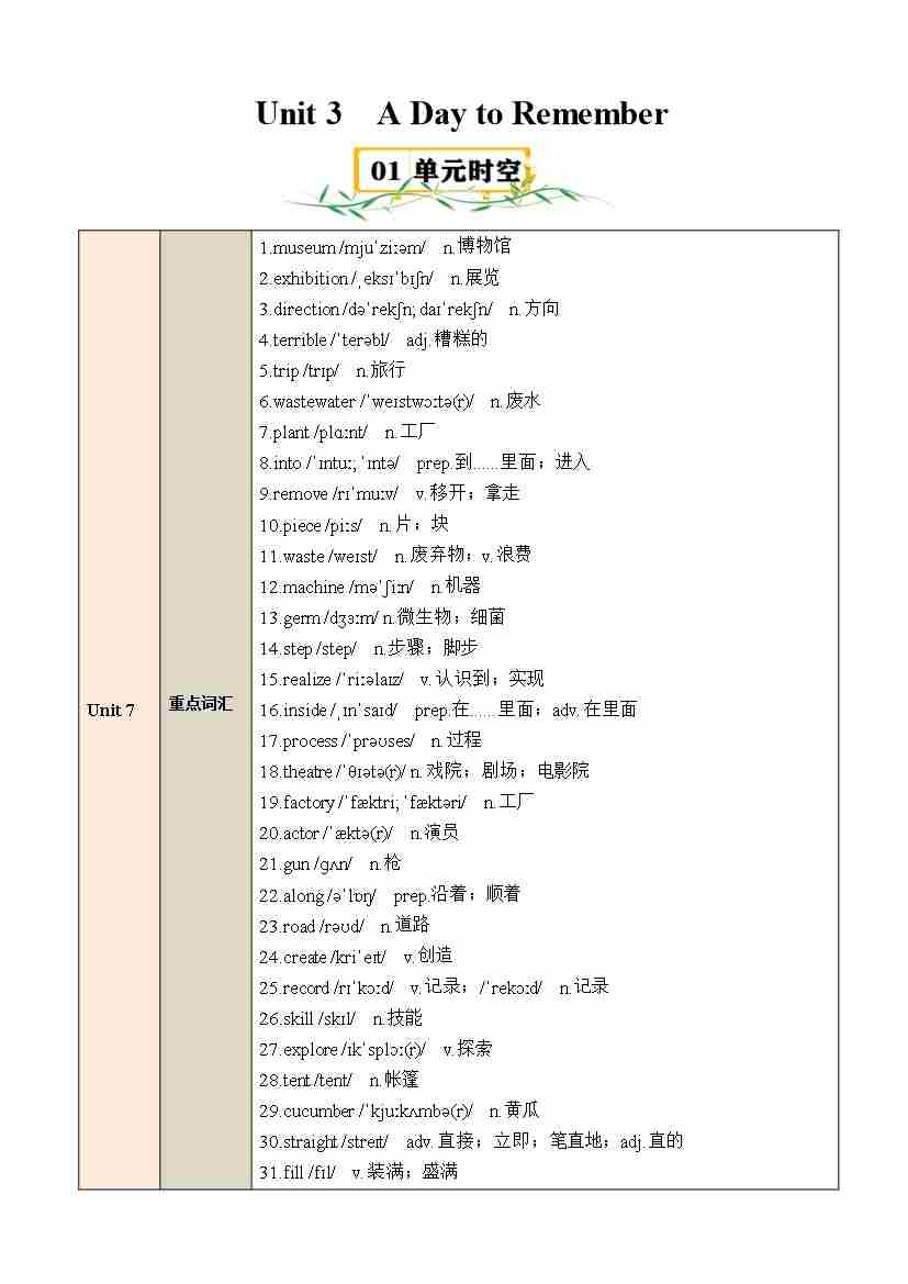 Unit 3 A Day to Remember 知识清单(挖空版)