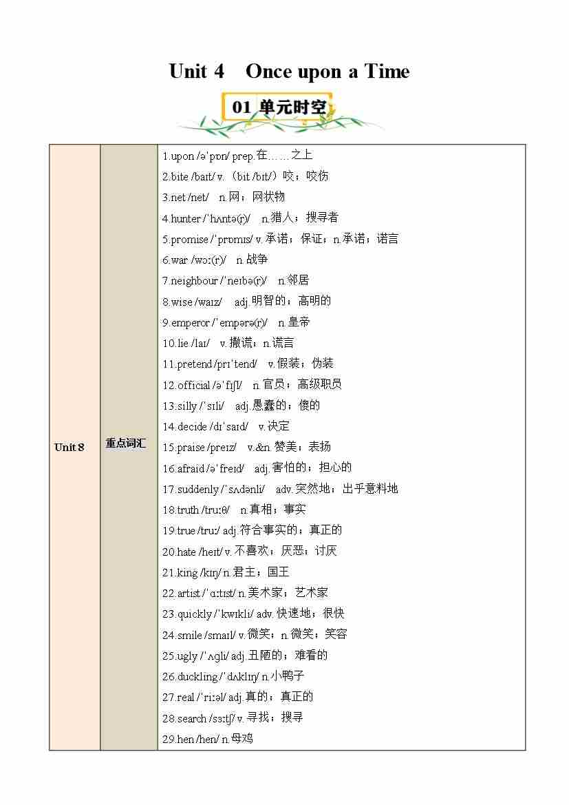 Unit 4 Once upon a Time 知识清单(挖空版)