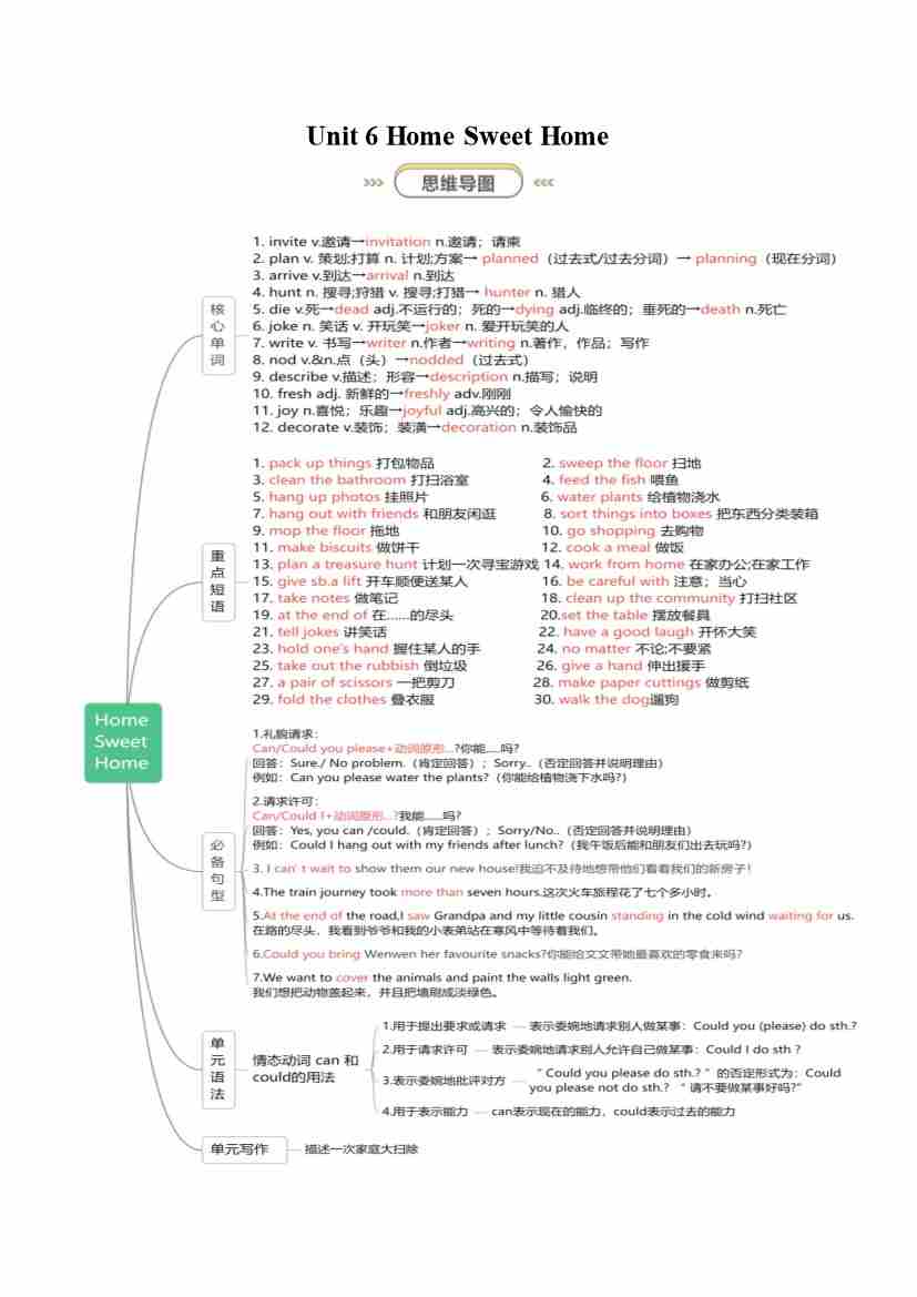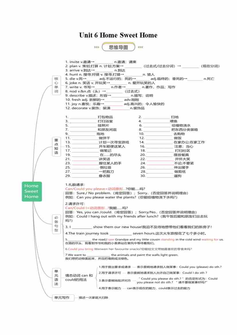 Unit 6 Home Sweet Home(知识清单)(默写版)