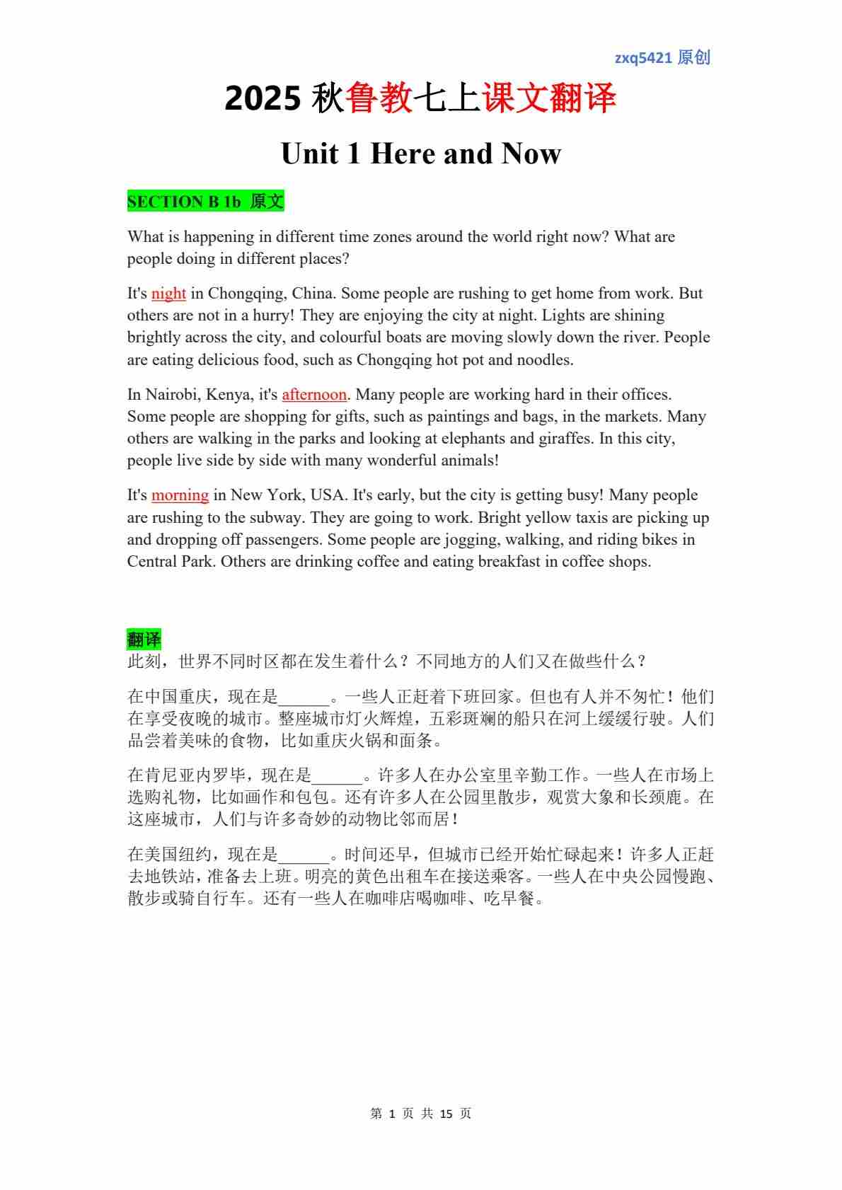 2025秋鲁教版七上英语课堂笔记1-6单元拼凑版