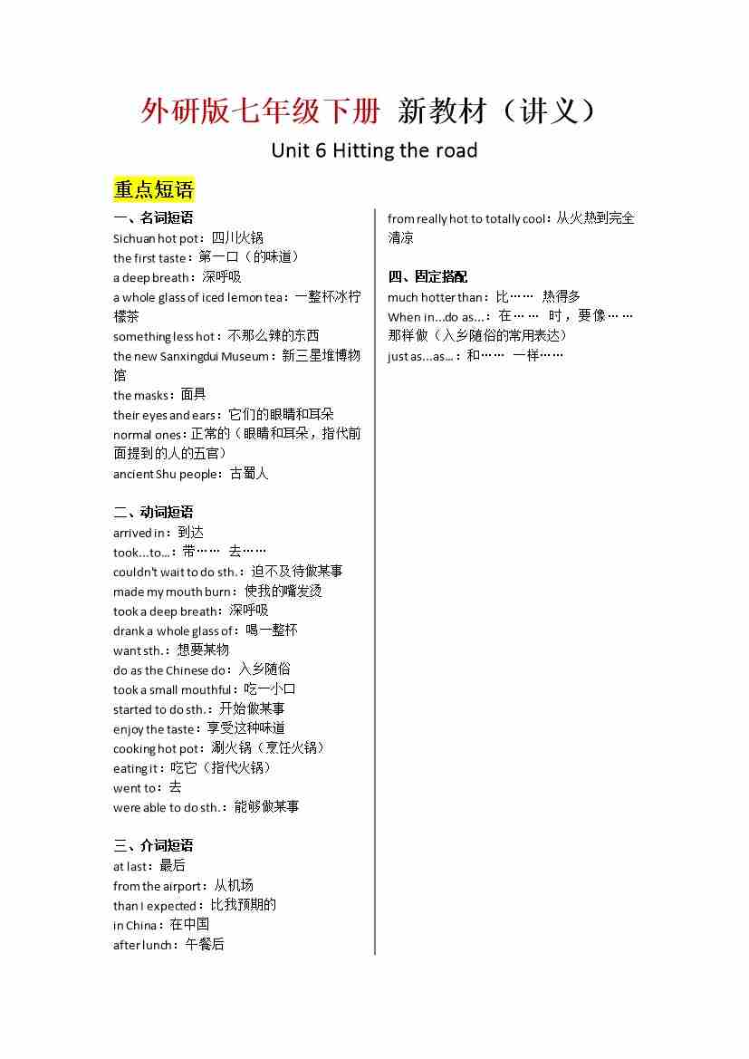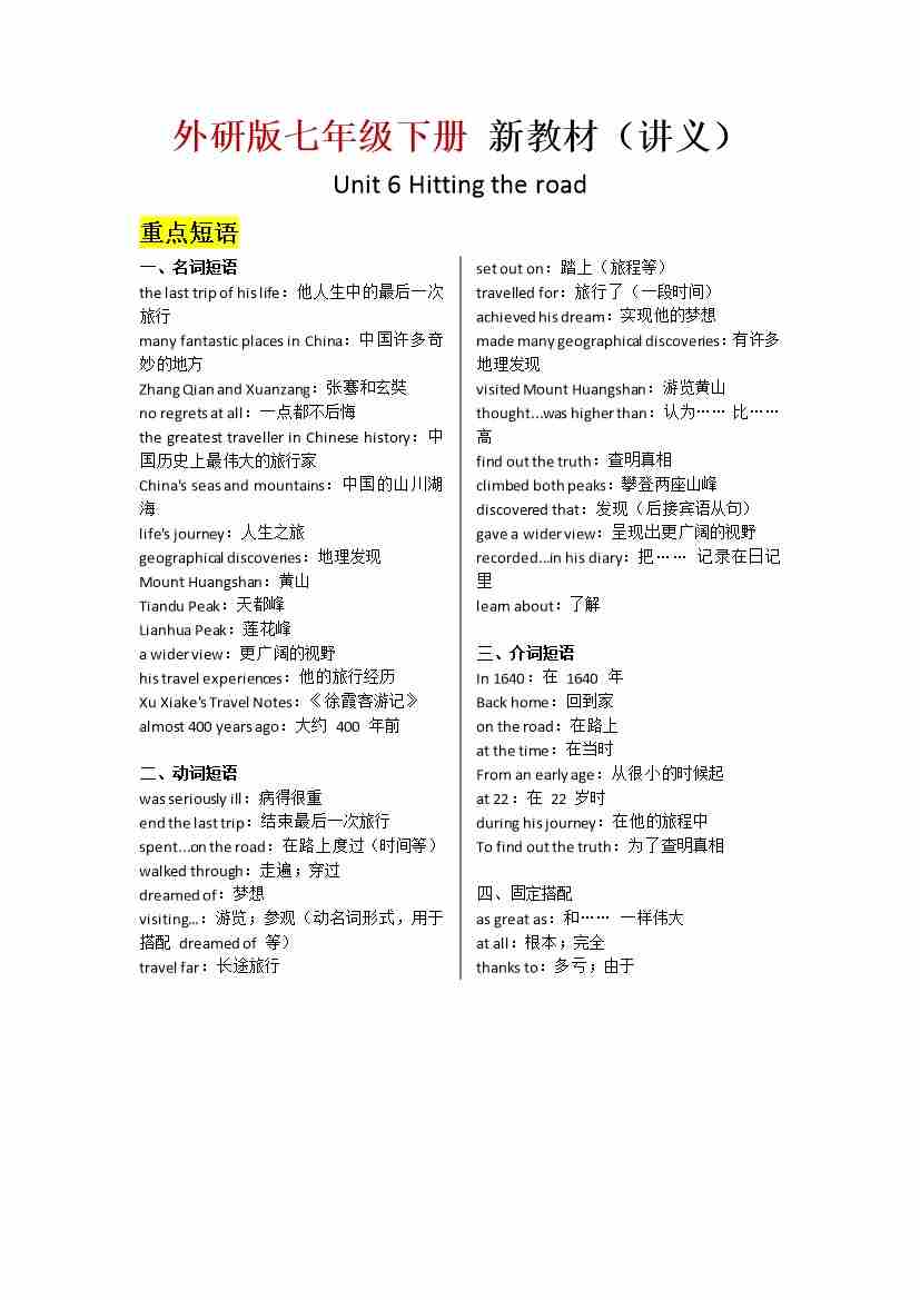 Unit 6 Hitting the road:Understanding ideas 课文逐句精讲