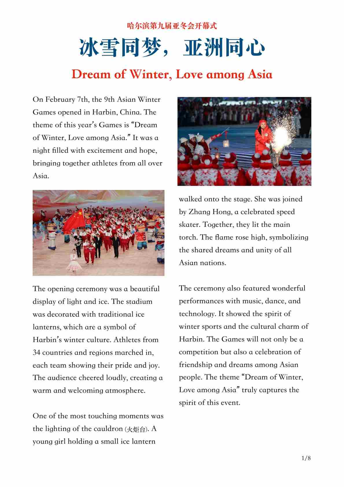 英语时文阅读:哈尔滨第九届亚冬会开幕式