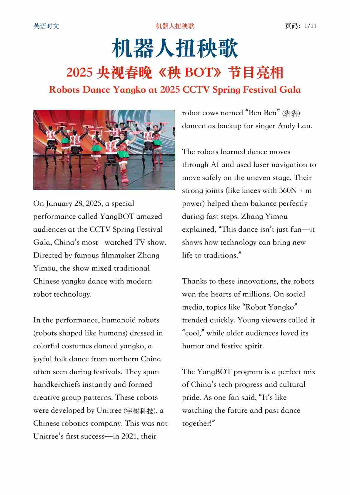 英语时文:2025 央视春晚《秧 BOT》节目亮相