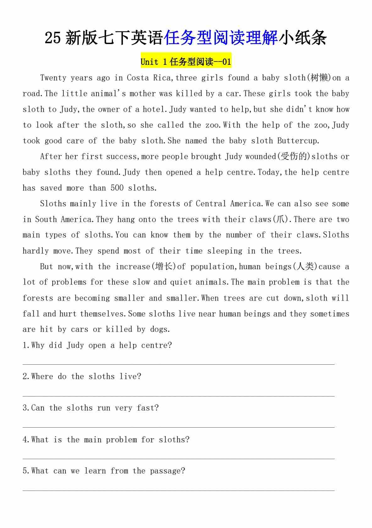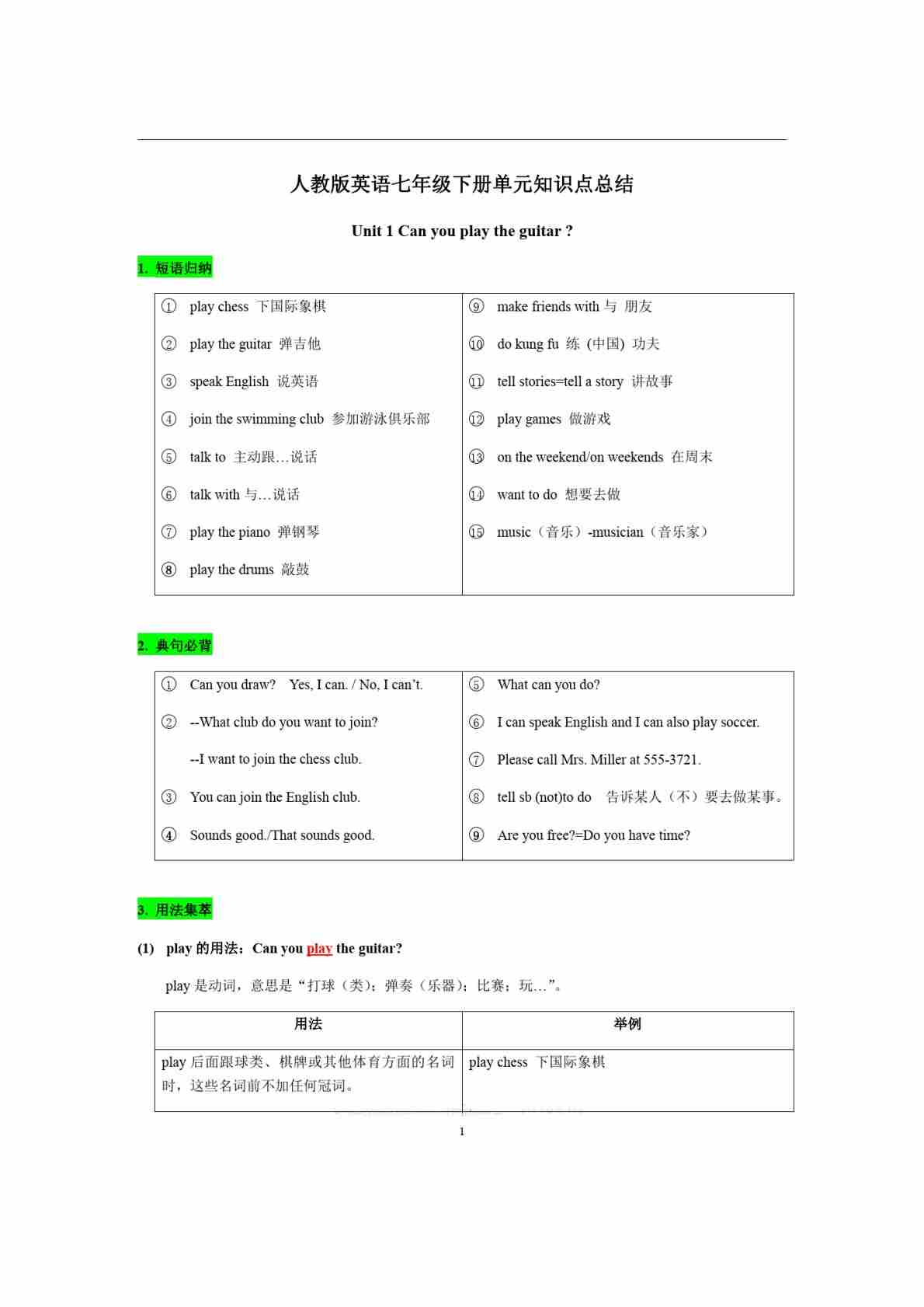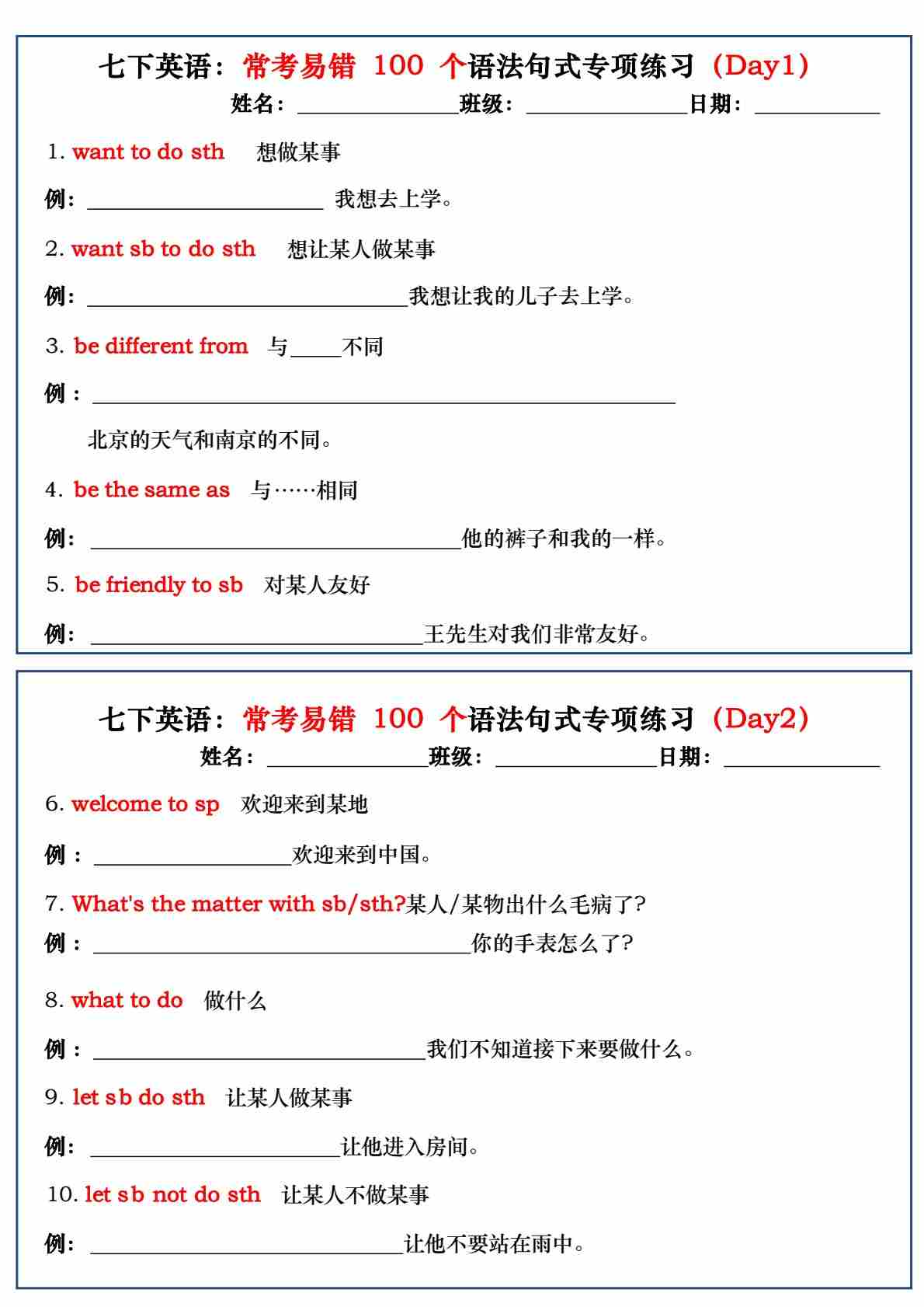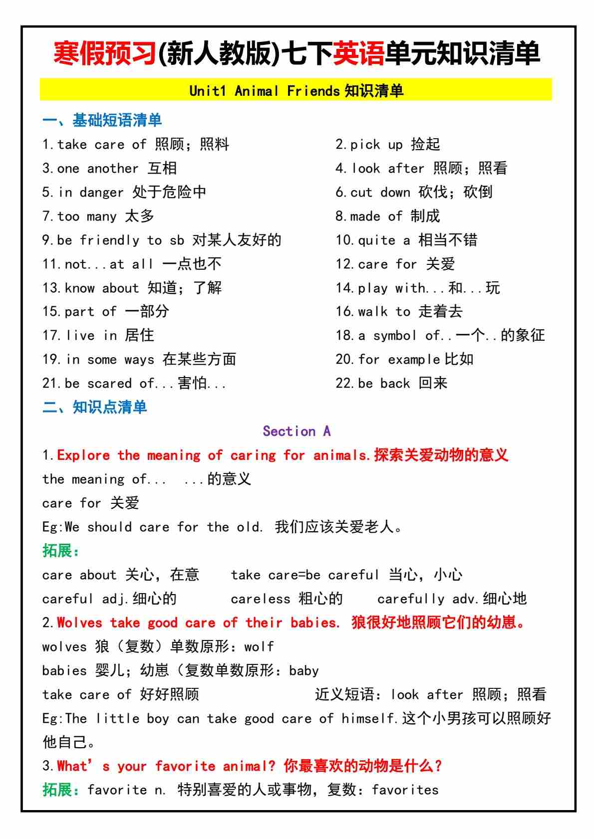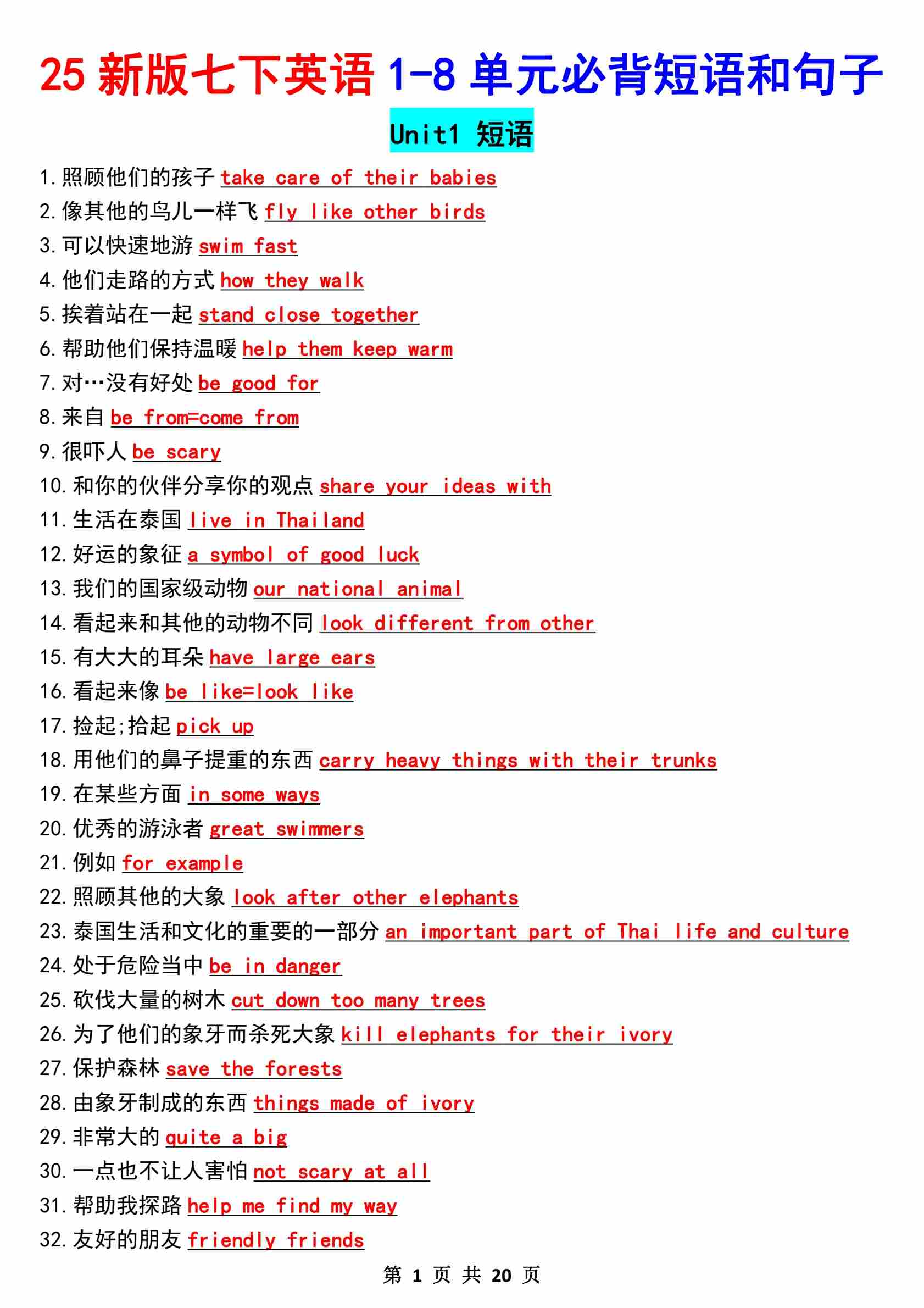 【25新版】七下英语1-8单元必背短语和句子_Password_Removed