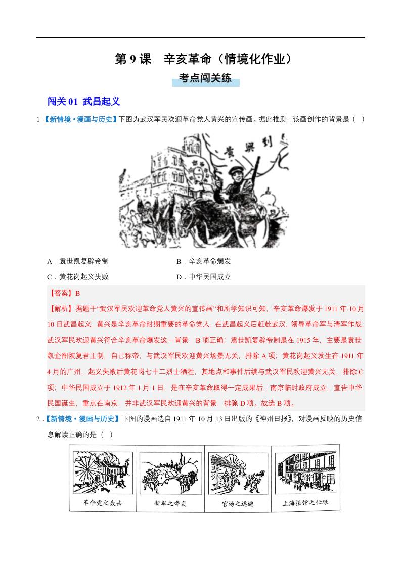 第9课 辛亥革命(情境化作业)(解析版).