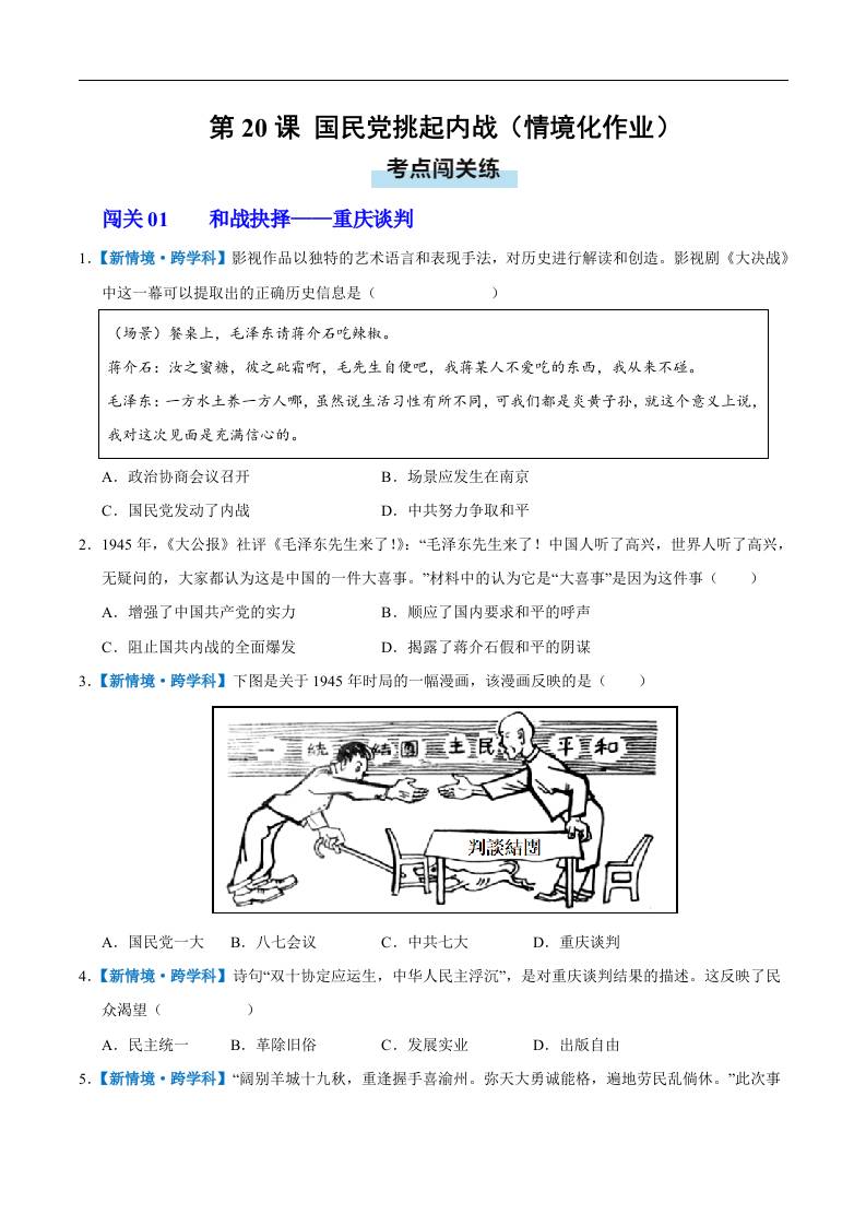 第20课 国民党挑起内战(情境化作业)(原卷版).