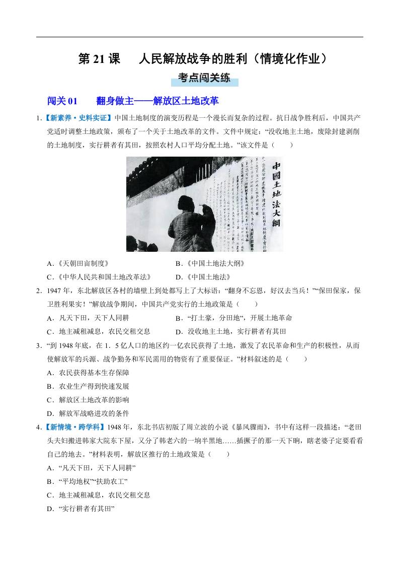 第21课 人民解放战争的胜利(情境化作业)(原卷版).