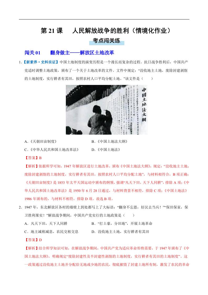 第21课 人民解放战争的胜利(情境化作业)(解析版).