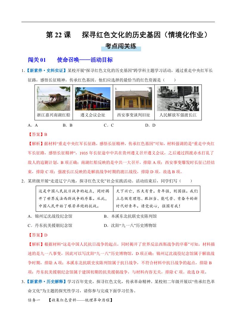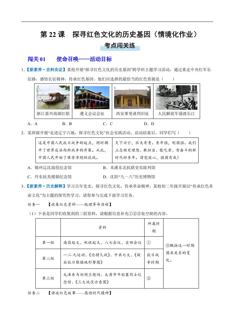 第22课 活动课 探寻红色文化的历史基因(情境化作业)(解析版).
