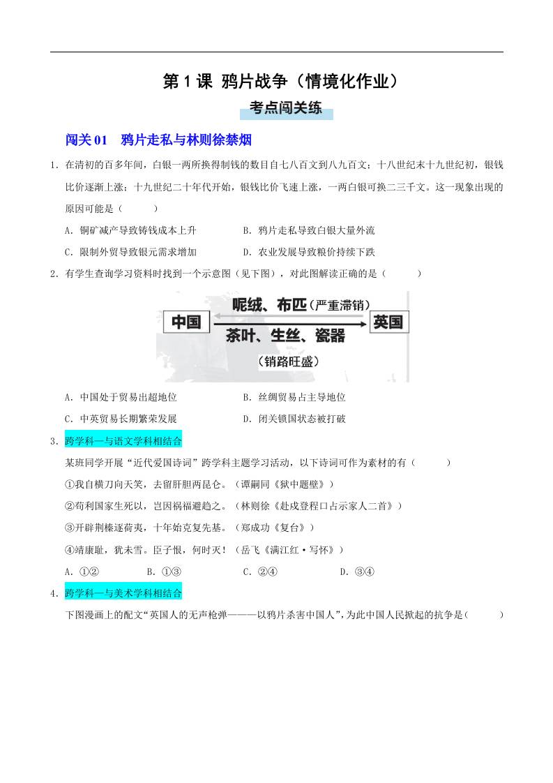 第1课 鸦片战争(情境化作业)(原卷版)..
