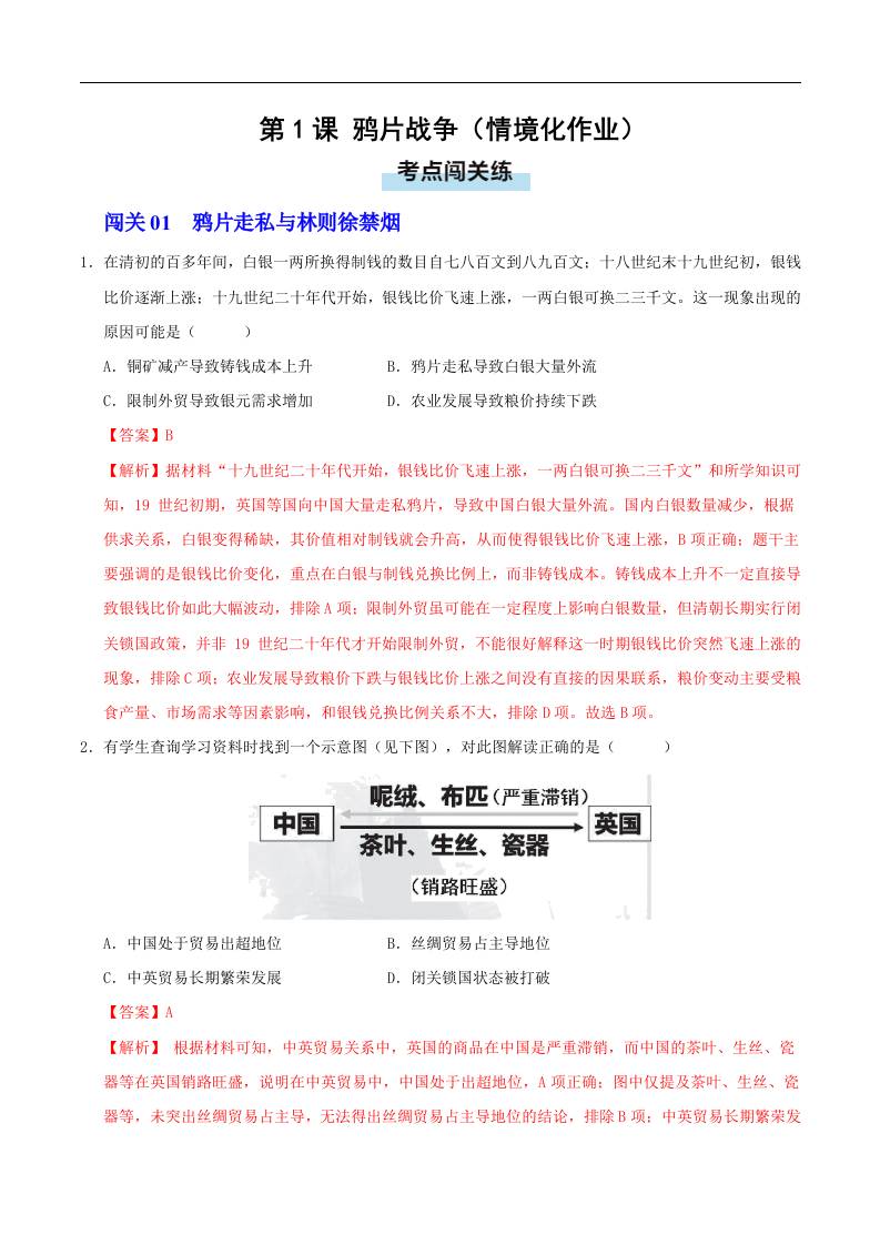 第1课 鸦片战争(情境化作业)(解析版).