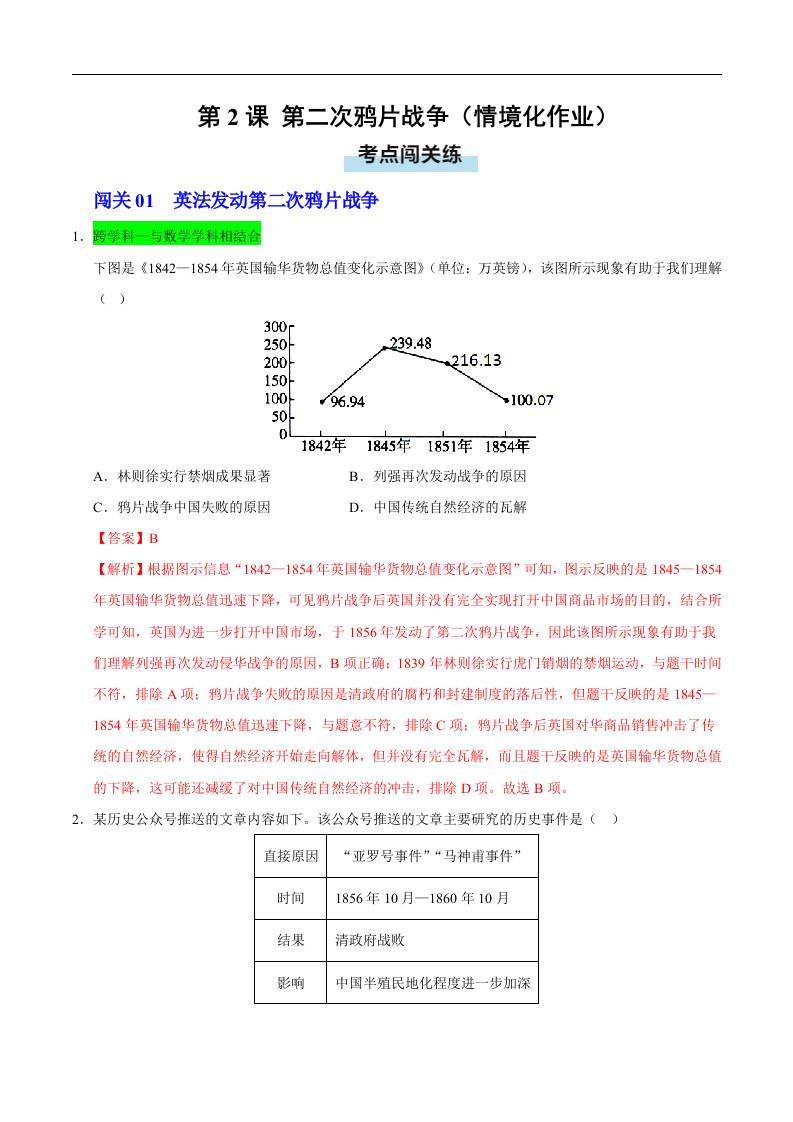 第2课 第二次鸦片战争(情境化作业)(解析版)..