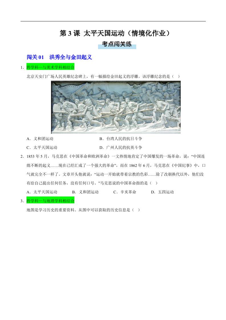 第3课 太平天国运动(情境化作业)(原卷版)..