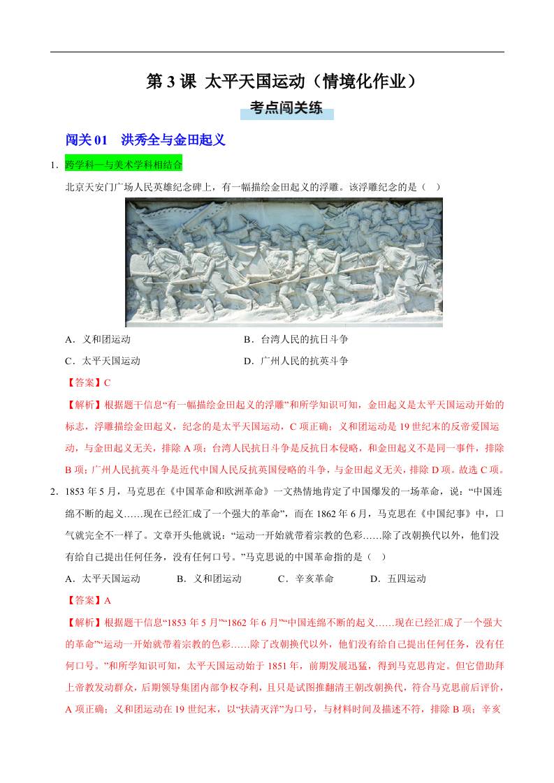 第3课 太平天国运动(情境化作业)(解析版)..