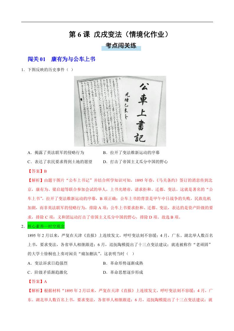第6课 戊戌变法(情境化作业)(解析版).