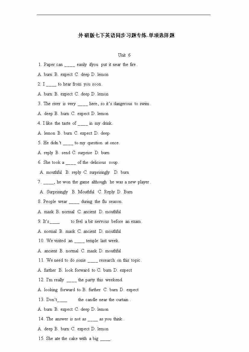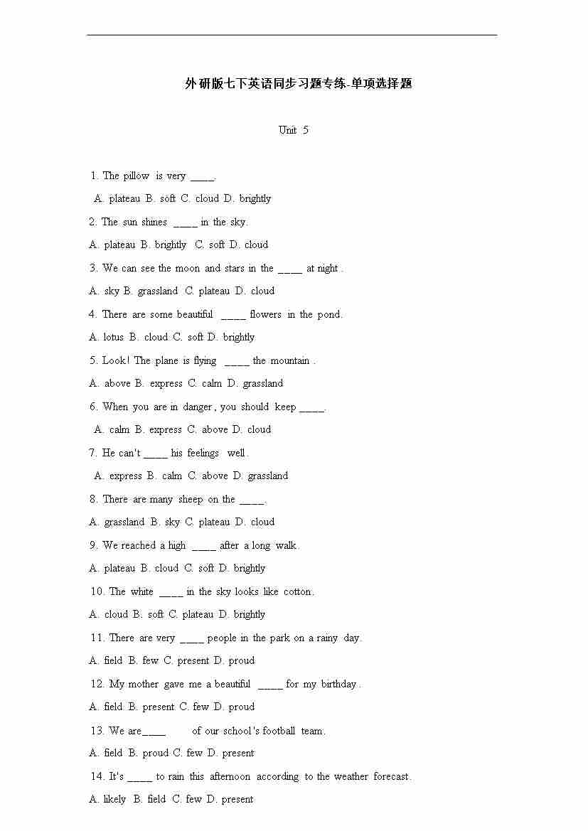 [21790615]2025春外研版七年级英语下册单项选择题专练Unit 5 Amazing nature(含答案解析)