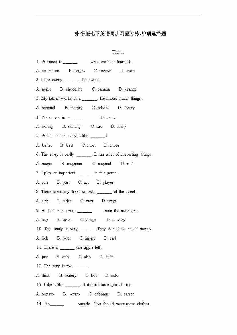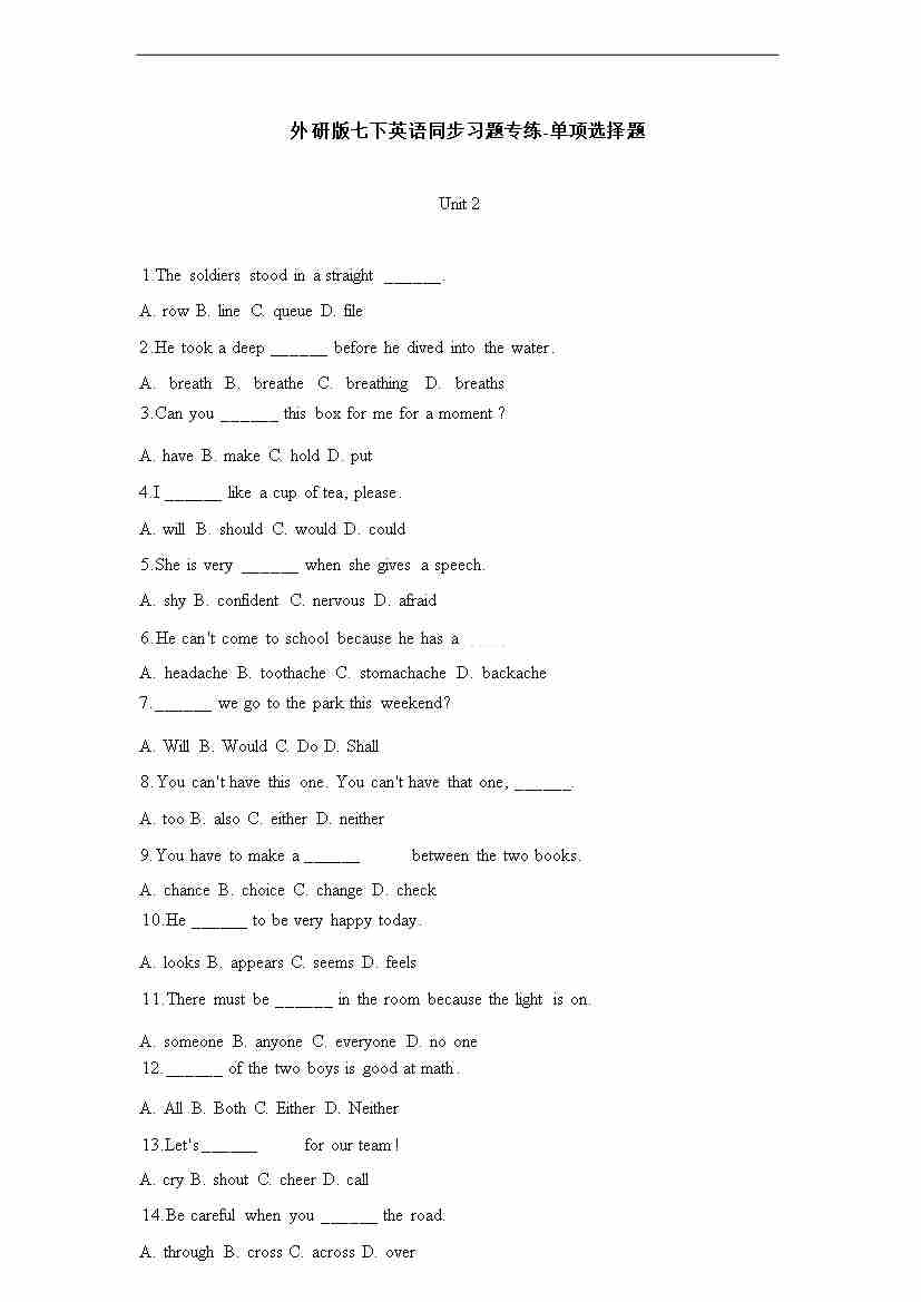 [21790620]2025春外研版七年级英语下册单项选择题专练Unit 2 Go for it!(含答案解析)