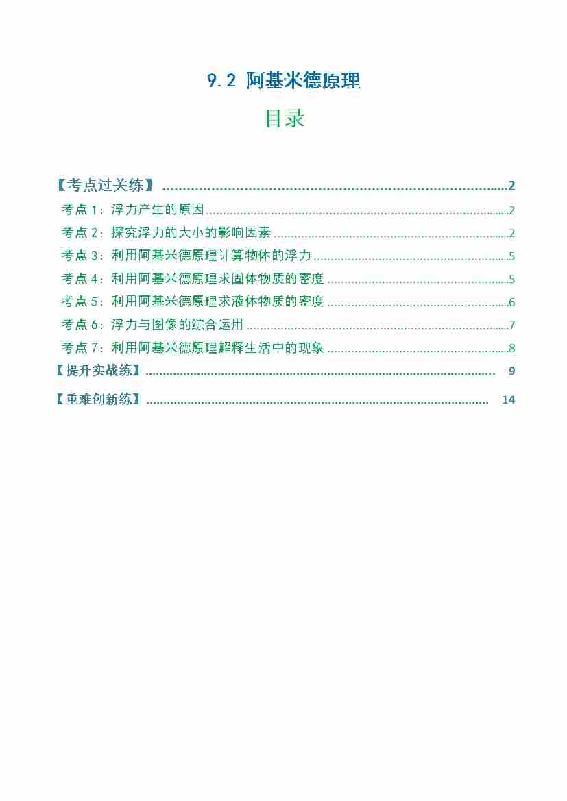 9.2 阿基米德原理(分层练习)(原卷版) 2