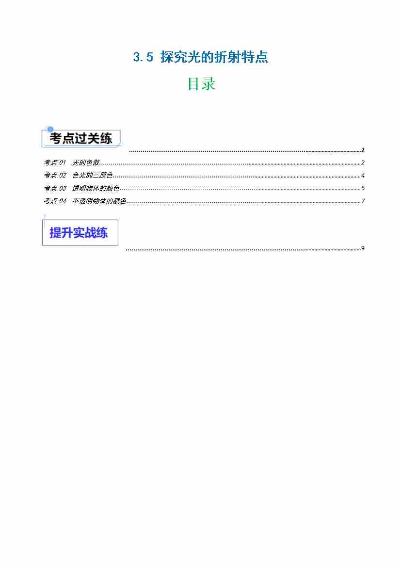 3.5 探究光的折射特点(分层作业)解析版