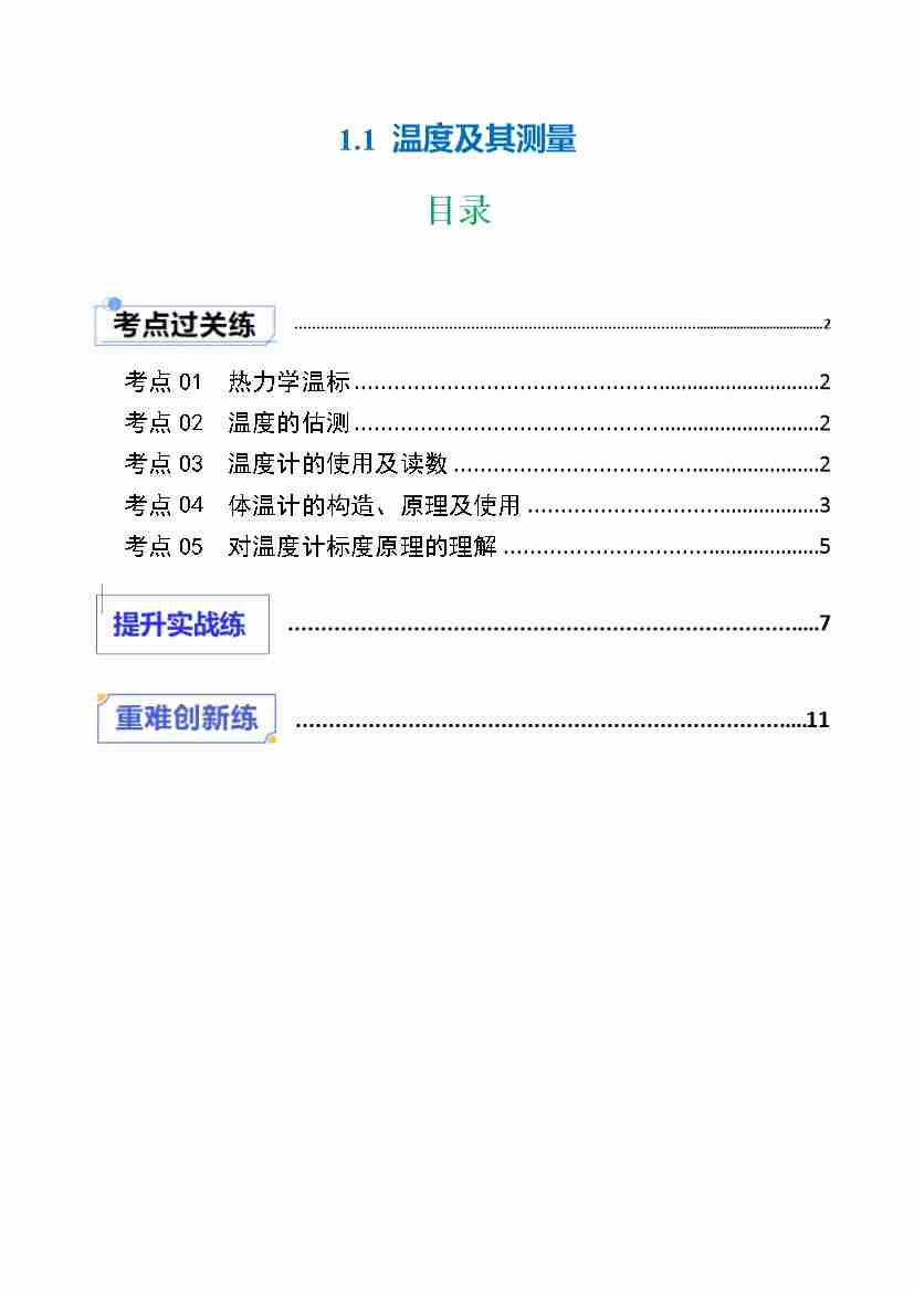1.1 温度及其测量(分层作业)原卷版